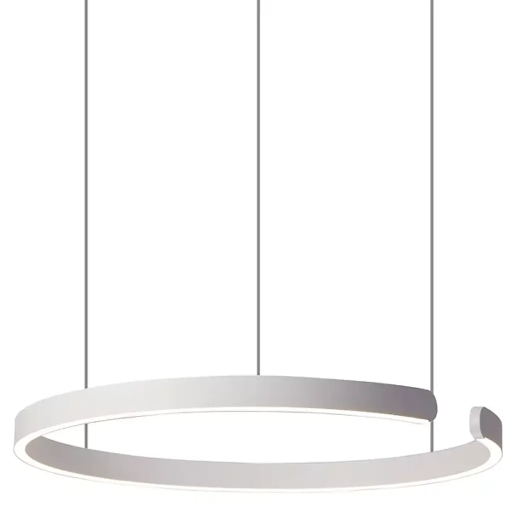 Create an invigorating lighting experience with the artful halo design of the Venia LED Chandelier from Huxe. Modern to contemporary settings are great candidates for this ultra-refined design. It hangs with fine wire to create a weightless visual. This wire suspends a robust aluminum structure that packs dimmable LEDs chosen for their efficiency. The LEDs’ light shines upward and downwards through silicone diffusers for a spacious, eye-comforting glow. The bright edge of the structure accentuates its dramatic C-shape silhouette.