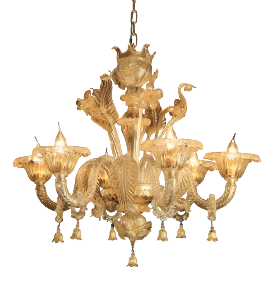 Venini Vittoriale 12-Light Chandelier In Amber Glass By Napoleone Martinuzzi