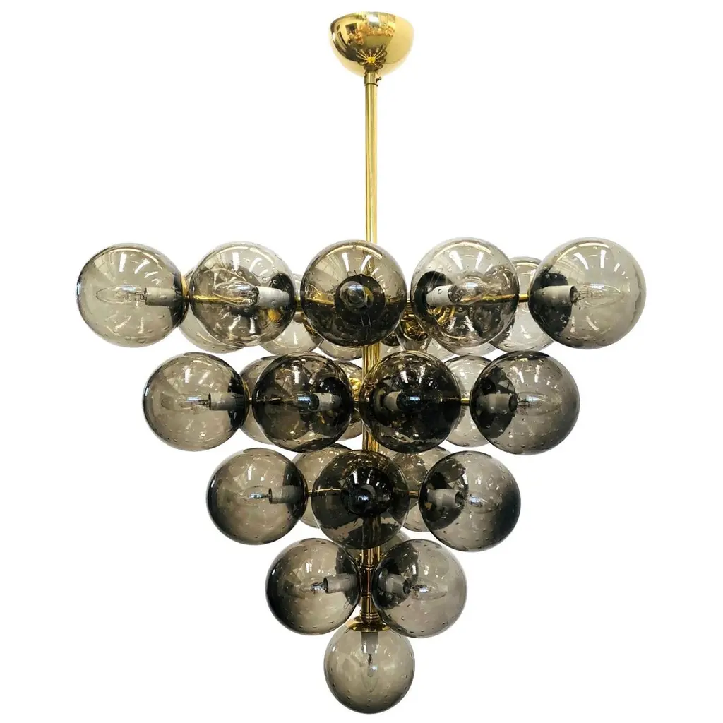 Italian sputnik chandelier with 24 Murano glass globes mounted on brass frame / Designed by Fabio Bergomi for Fabio Ltd / Made in Italy24 lights / E12 or E14 type / max 40W eachDiameter: 28 inches / Height: 39 inches including rod and canopyOrder only / This item ships from ItalyOrder Reference #: FABIOLTD VENTIQUATTRO