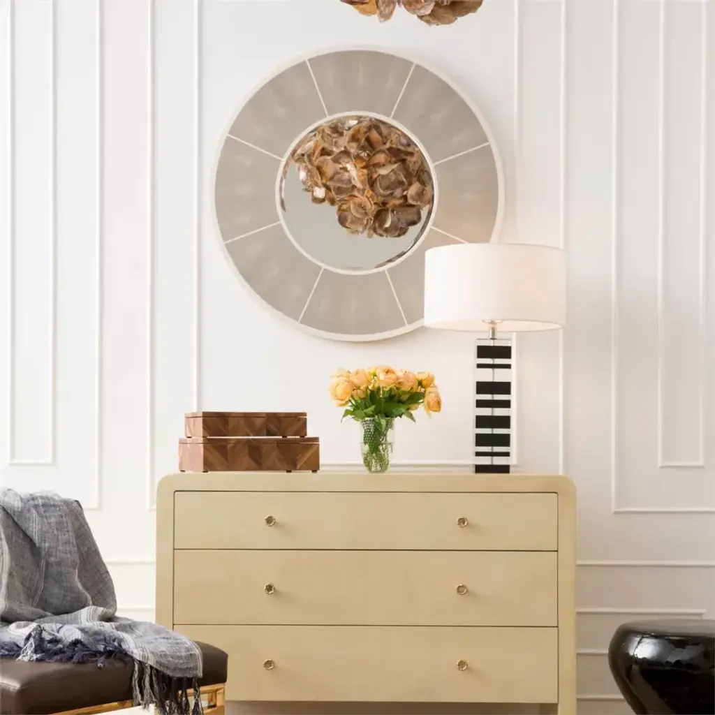 This chandelier statement piece is a true work of art. Saddle oyster shells are hand-placed in florets, creating a highly crafted look that makes each organic-looking Venus chandelier one of a kind.