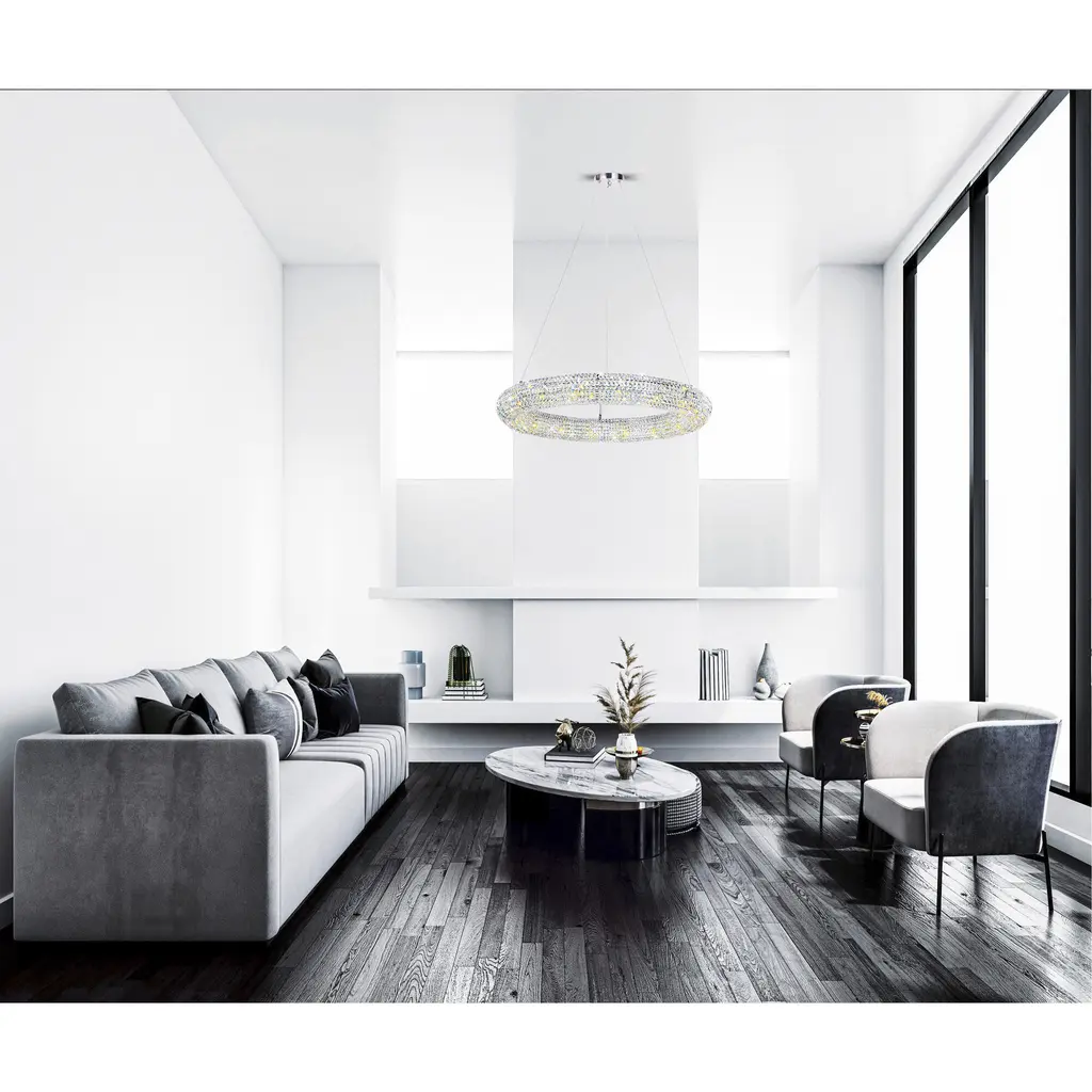 Enhance your dining space with the elegant Veronique 8 Light Chandelier, a dazzling centerpiece featuring a 24-inch crystal-adorned disc design that radiates timeless sophistication. Its adjustable suspension allows for a perfect fit in rooms with low or high ceilings, while dimmer compatibility lets you customize the ambiance for any occasion. Crafted to impress, this chandelier combines refined style with functional versatility, making it ideal for both modern and traditional interiors. The sparkling crystals catch the light beautifully, creating a warm and inviting atmosphere. Elevate your homes decor with this stunning fixture that effortlessly blends luxury and practicality.
