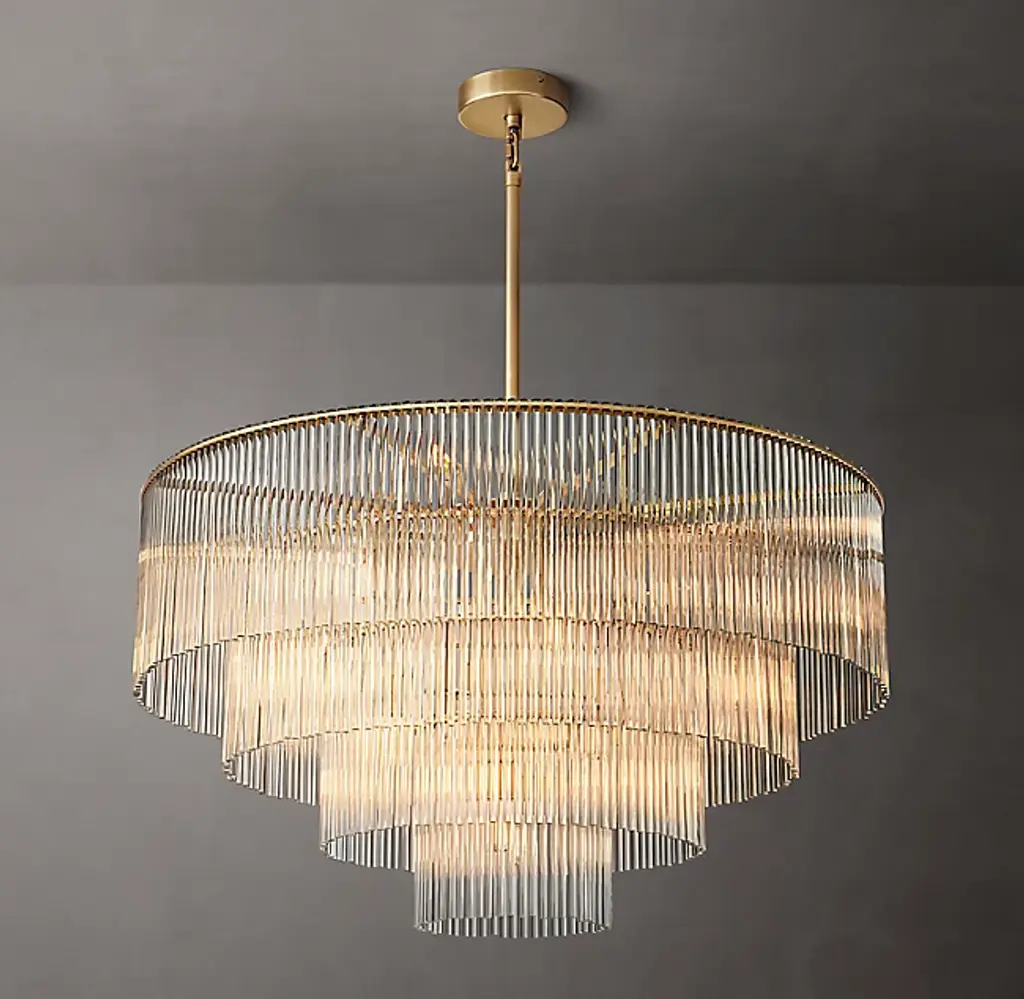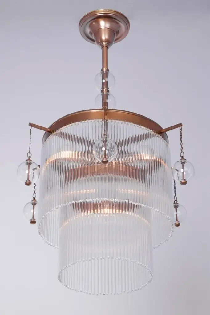 Versailles II is a suspension lamp made of brass available in different finishes.Finishes: Antique, Shiny brass, Matt brass, Shiny nickel, Matt nickelCapacity: 4 x 60W E14Patinas lamps are all handmade in Hungary. They are made of solid brass,available in different finishes such as antique,shiny brass,nickel. The lights can be customized and orderd with other shades as on the photo. Sockets are made of porcelain,this way you can use traditional, energy saving light bulbs and LED. As little brass as possible, as many crystal tubes as possible: this is Versailles. All lamps feature multiple tiers, resulting in beautiful light reflections filling a grand space. It cannot get more voluminous than this!