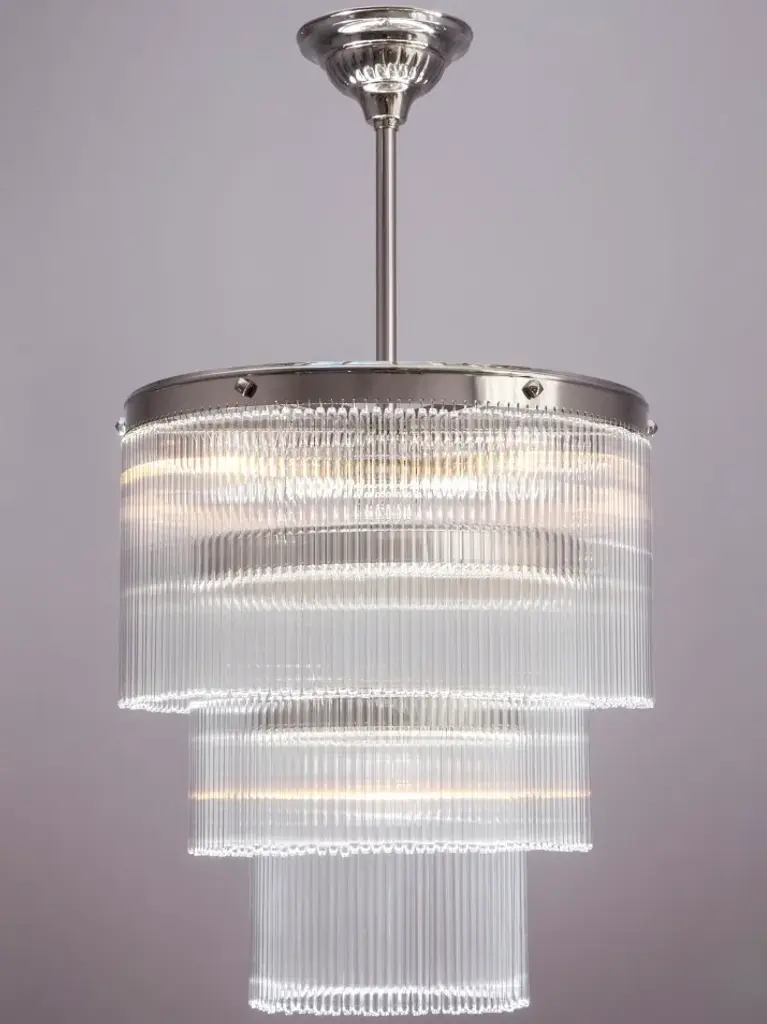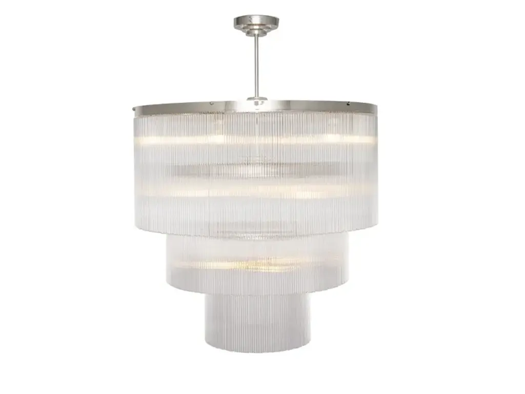 Versailles III is a suspension lamp made of brass available in different finishes.Finishes: Antique, Shiny brass, Matt brass, Shiny nickel, Matt nickelCapacity: 4 x 75 W E27Patinas lamps are all handmade in Hungary. They are made of solid brass,available in different finishes such as antique,shiny brass,nickel. The lights can be customized and orderd with other shades as on the photo. Sockets are made of porcelain,this way you can use traditional, energy saving light bulbs and LED. As little brass as possible, as many crystal tubes as possible: this is Versailles. All lamps feature multiple tiers, resulting in beautiful light reflections filling a grand space. It cannot get more voluminous than this!