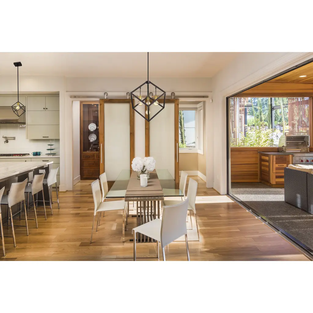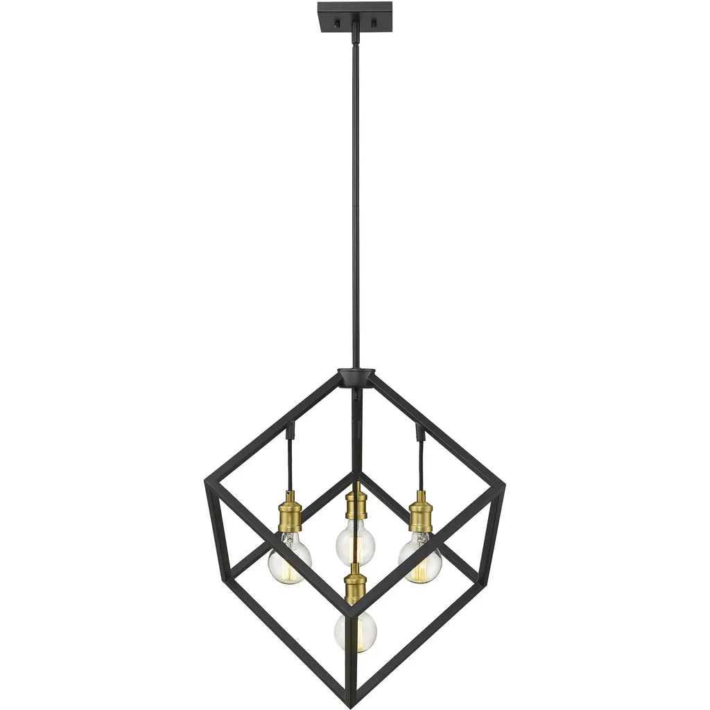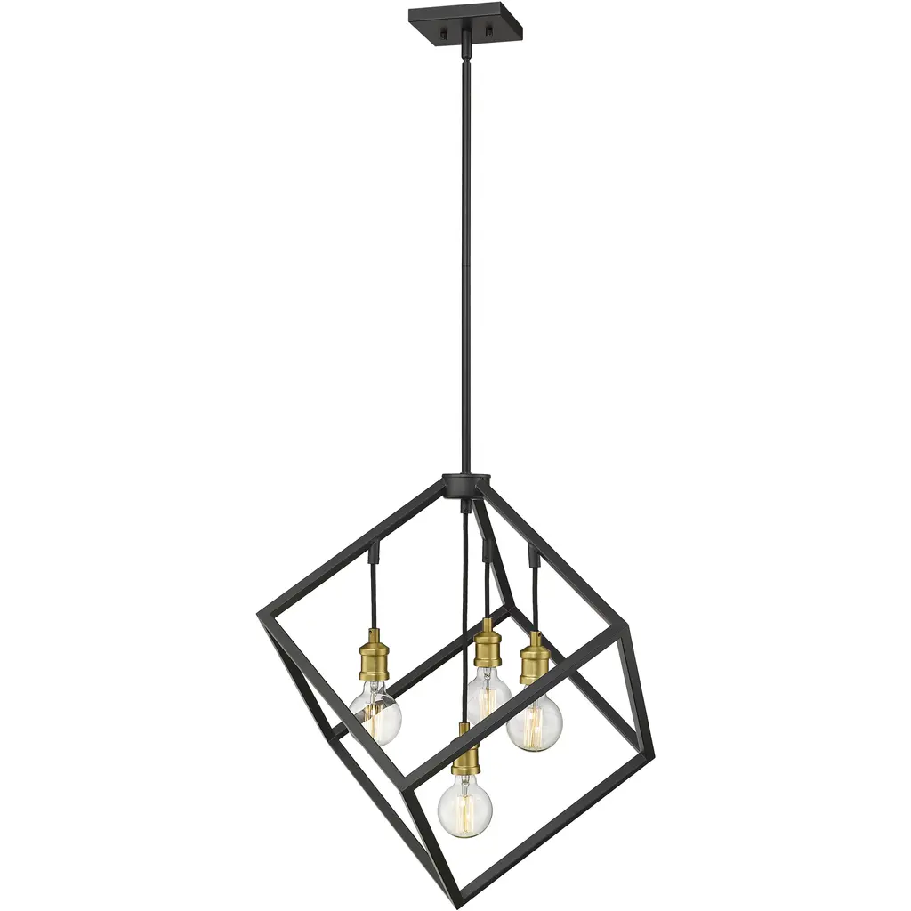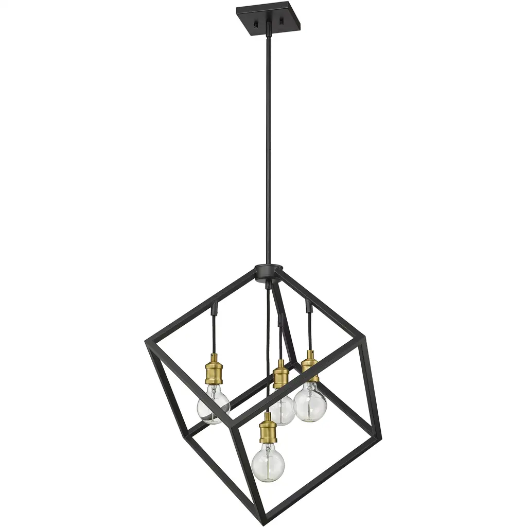 You'll love the clean modern edge that this two-tone four-light pendant adds to your home. It features a bronze and olde brass finish with the lights inside a single cube-shaped shade for a dynamic look and feel. It's a vibrant light designed to transform any dining room, hallway, bedroom, or kitchen.