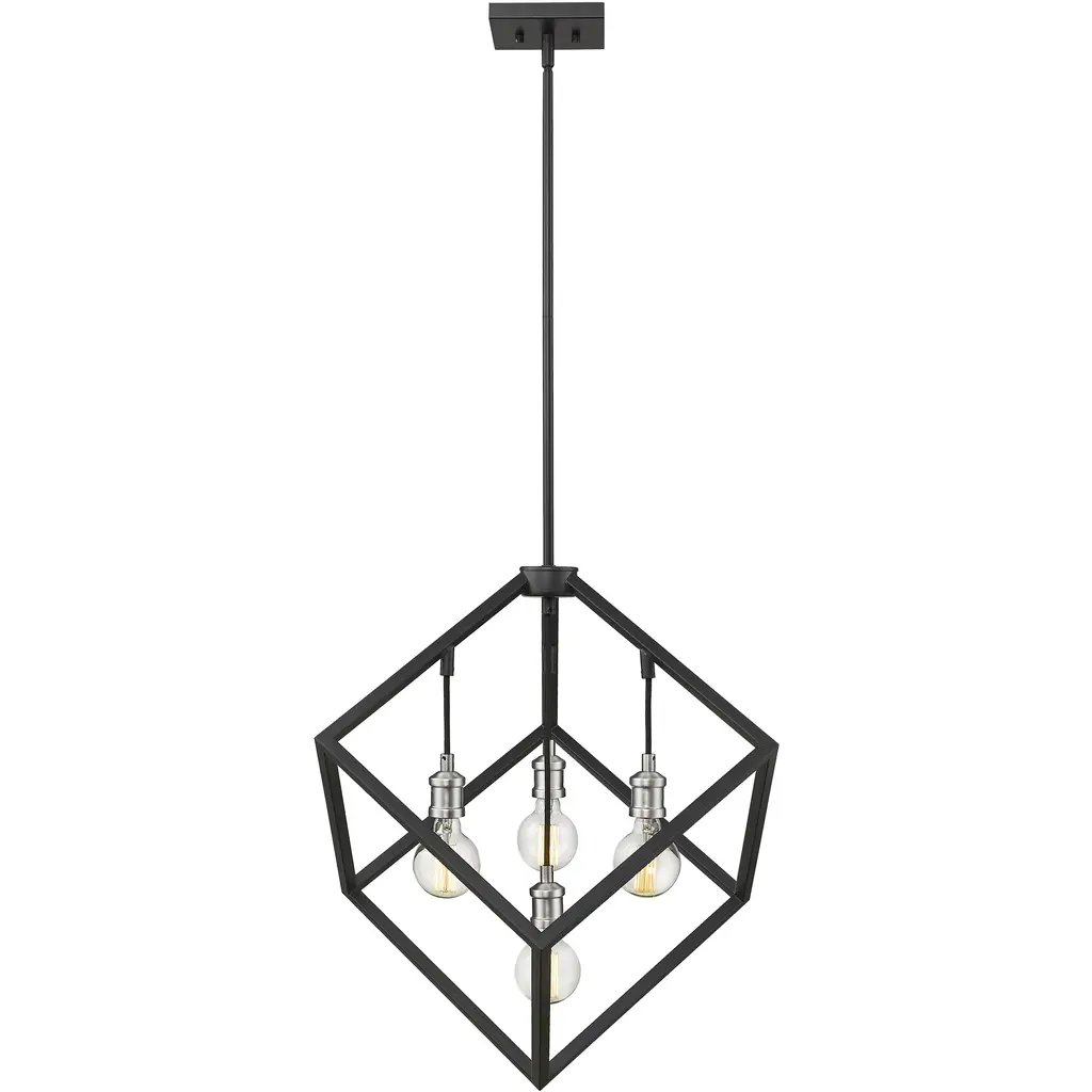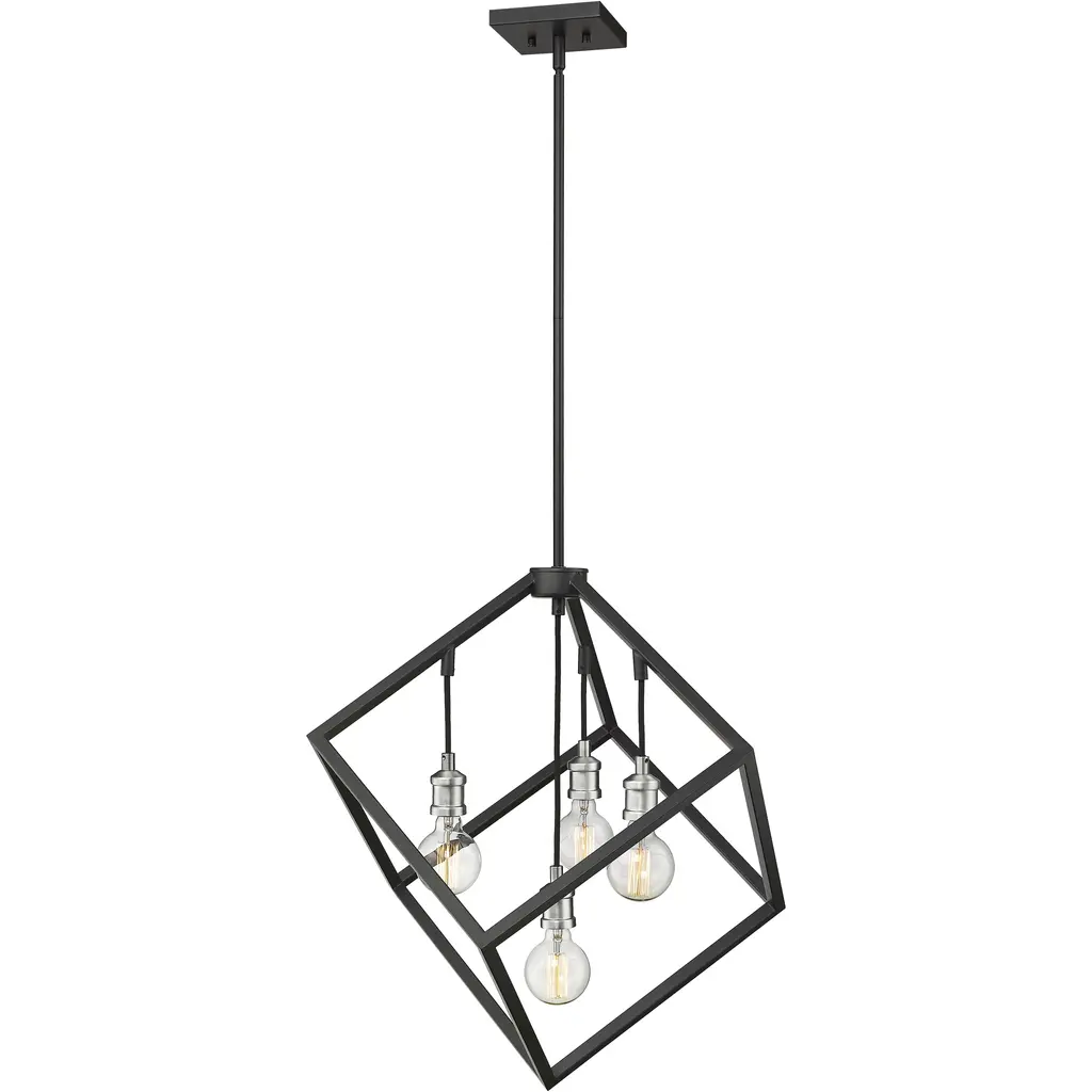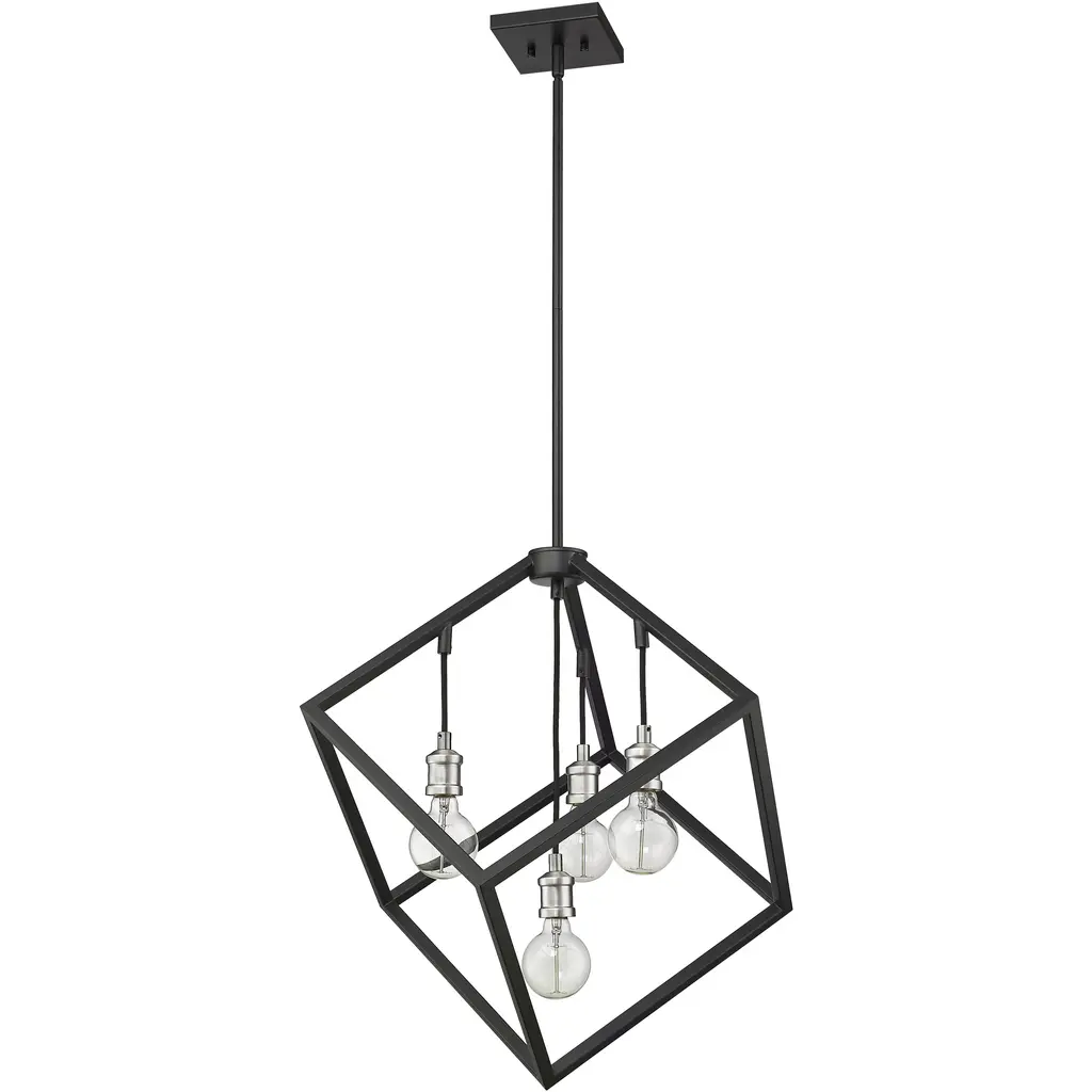 You'll love the clean modern edge that this two-tone four-light pendant adds to your home. It features a matte black and brushed nickel finish with the lights inside a single cube-shaped shade for a dynamic look and feel. It's a vibrant light designed to transform any dining room, hallway, bedroom, or kitchen.