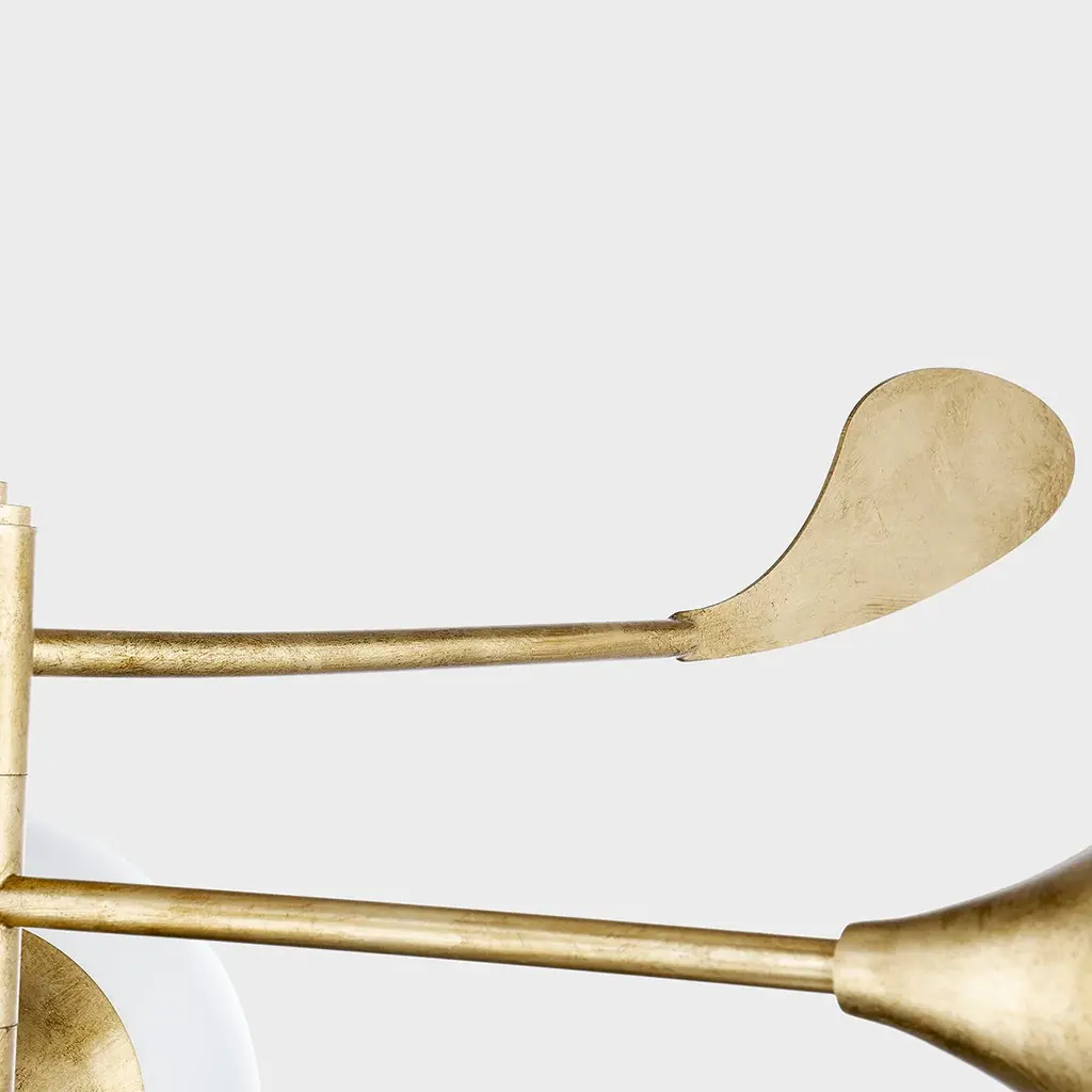 Victoria brings modern style to ceilings throughout the home. Smooth, curved lines and a mobile-inspired design add elegance and a sense of movement to the chic three-light chandelier. While delicate, petal-shaped accents in Vintage Gold Leaf elevate the familiar silhouette of the opal glossy globe pendant. The chandelier comes in a Vintage Gold Leaf or Textured Black finish and the pendant is available in two sizes. Part of our Home Ec. x Mitzi Tastemakers collection.