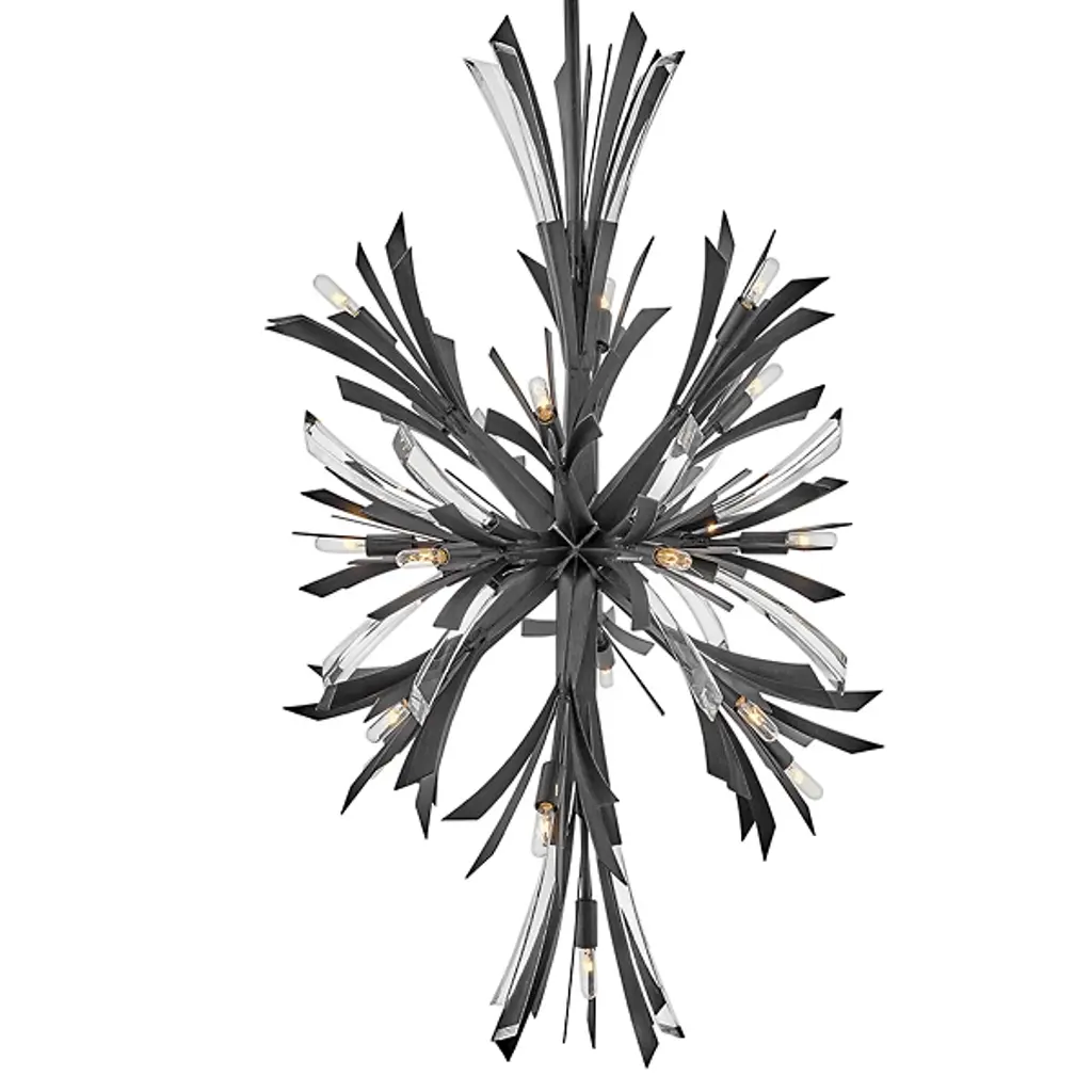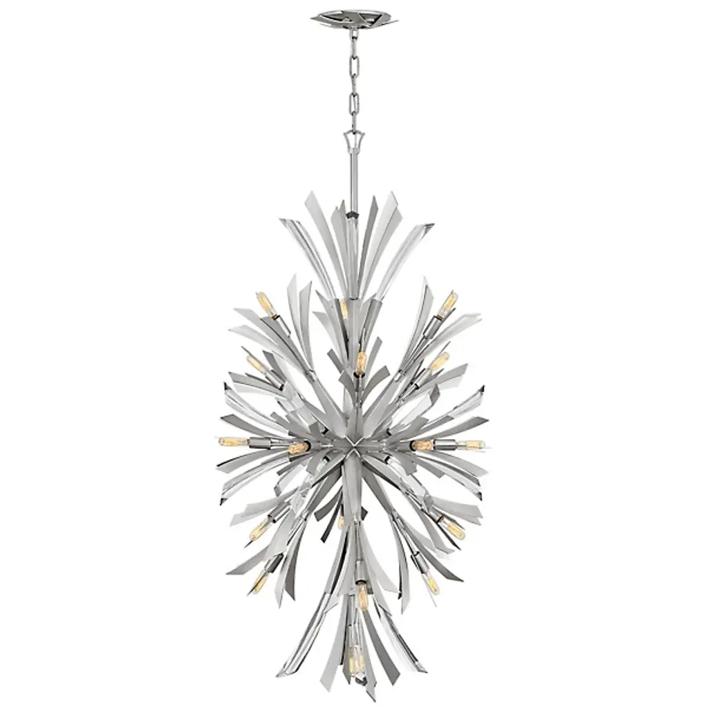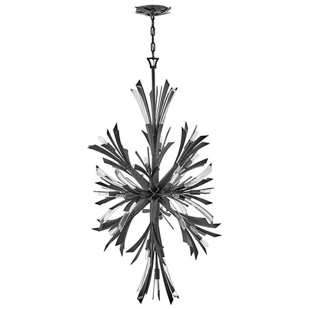 The Vida Large Orb Chandelier by Fredrick Ramond brings a glamorous, flourishing dose of style to spaces. With an elongated, starburst silhouette, this dramatic chandelier is simply suspended from a linked chain, single down rod, and beautiful, decorative canopy. A sweeping arrangement of smoothly sculpted metal is layered with crystal accents and exposed bulbs to create a decorative yet sophisticated piece that lends a bright and even layer of light to surroundings.