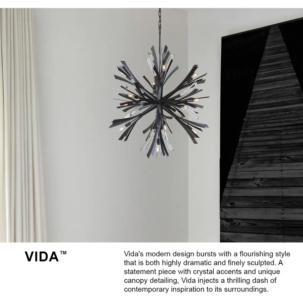 Vida's modern design bursts with a flourishing style that is both highly dramatic and finely sculpted. A statement piece with crystal accents and unique canopy detailing, Vida injects a thrilling dash of contemporary inspiration to its surroundings.