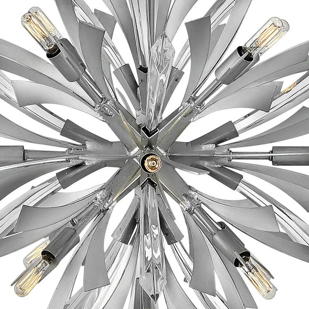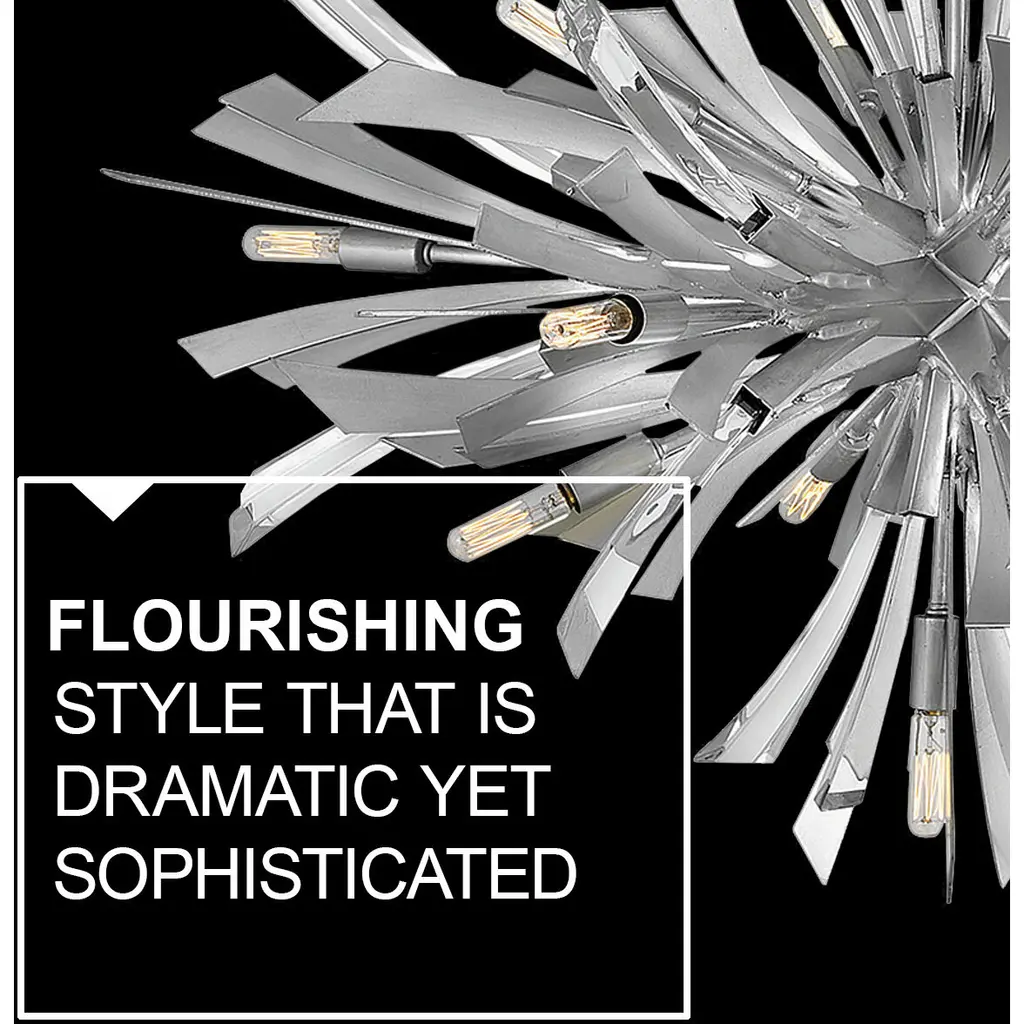 Vida's modern design bursts with a flourishing style that is both highly dramatic and finely sculpted. A statement piece with crystal accents and unique canopy detailing, Vida injects a thrilling dash of contemporary inspiration to its surroundings.