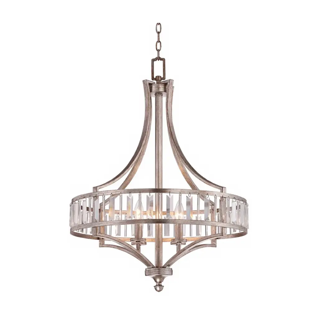 From the Vienna Full Spectrum™ brand of designer lighting, this breathtaking chandelier is an exquisite addition to any space. The transitional design features contemporary crystal shapes and a curved metal frame. Refracted light illuminates your room space after striking this chandelier's jewelry-like configuration.