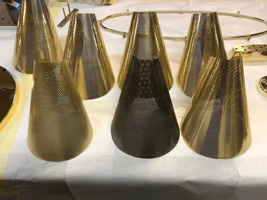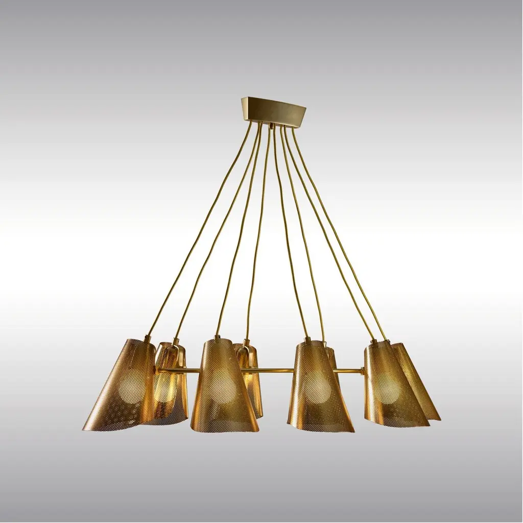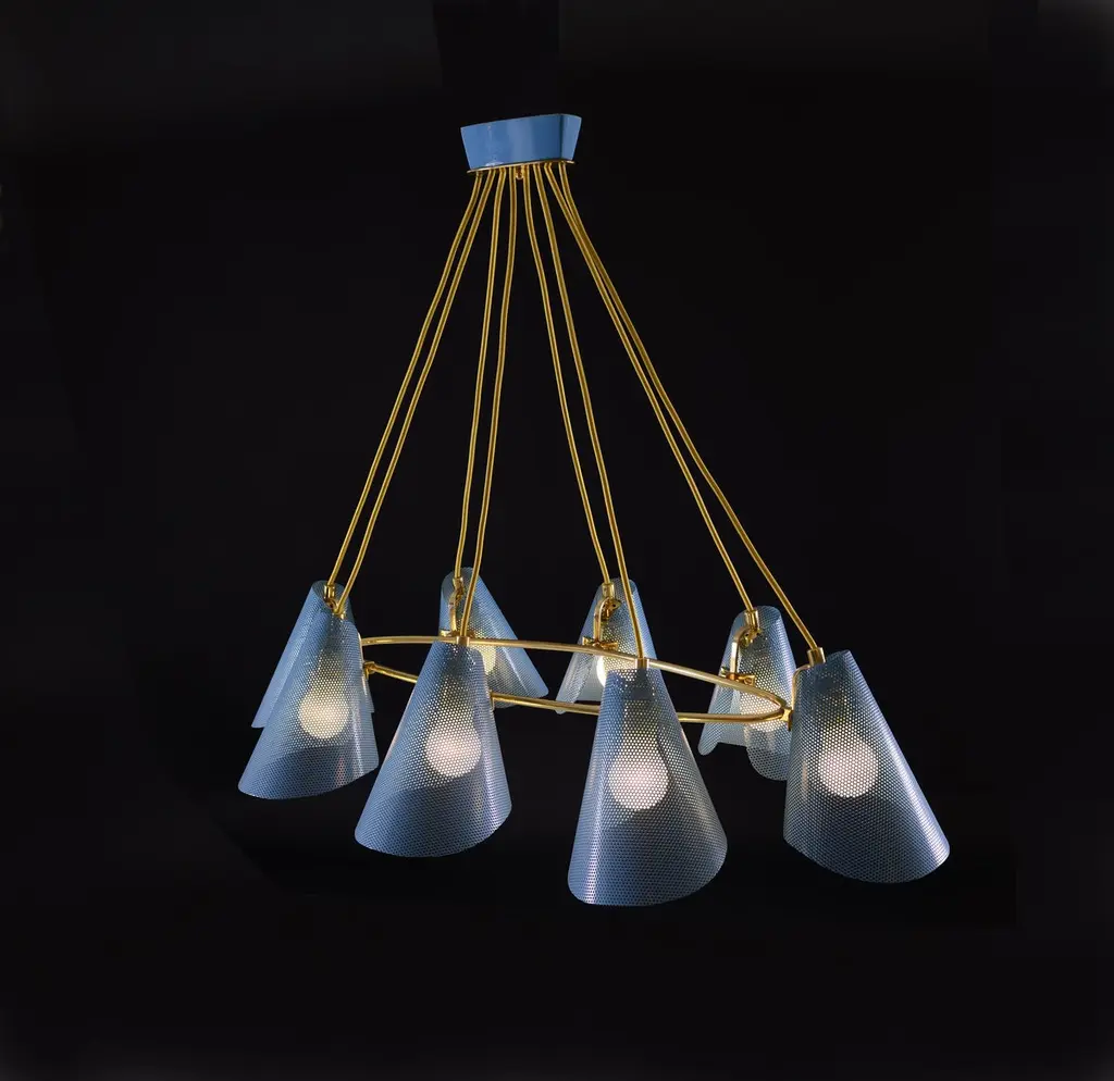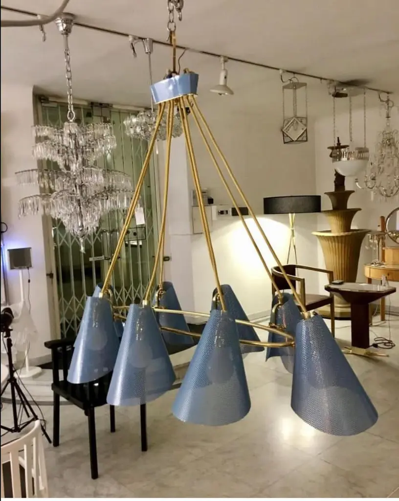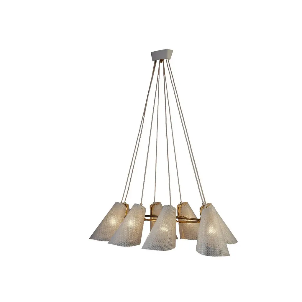 Viennese Brass Chandelier Mid-Century Modern Style, Diff. Colors Available