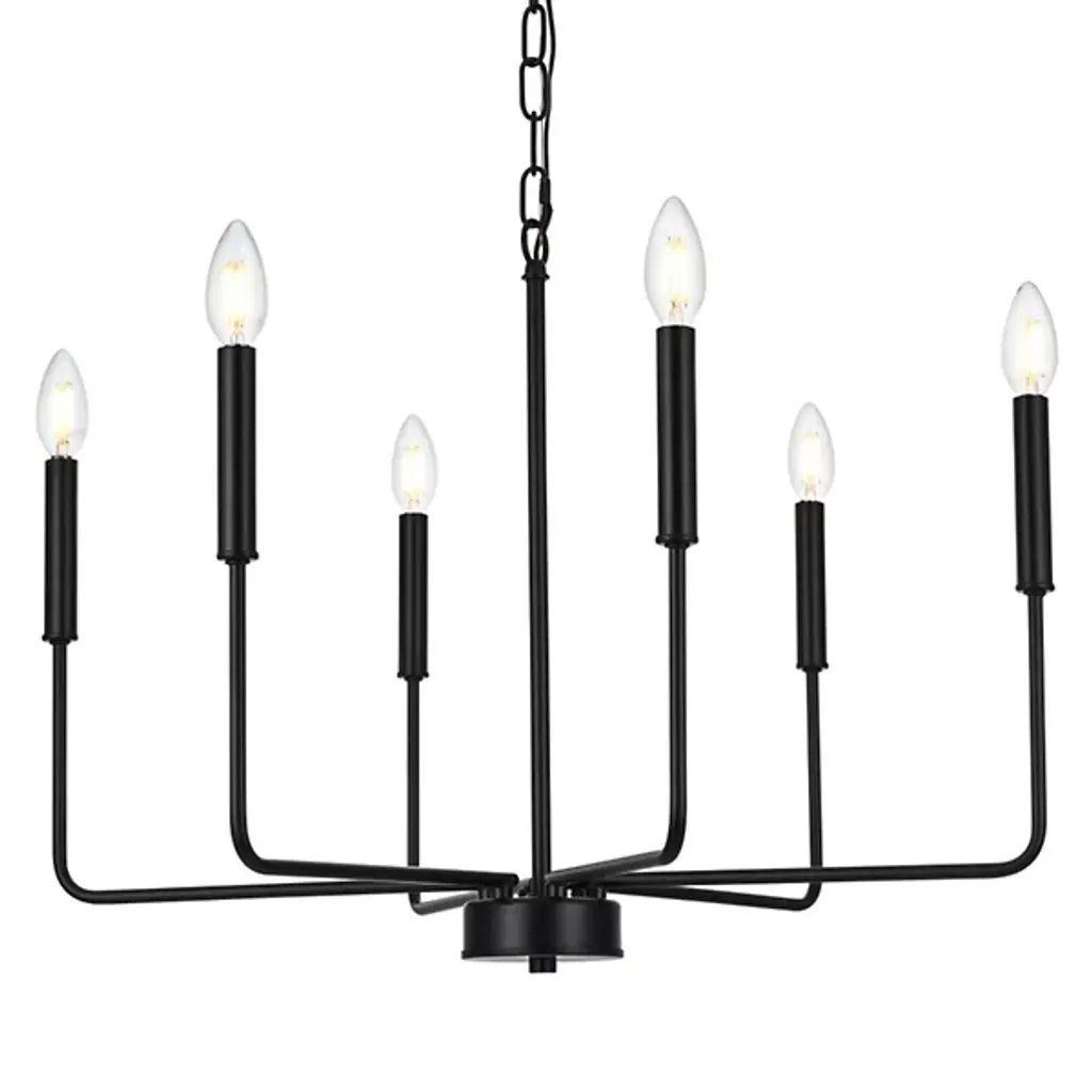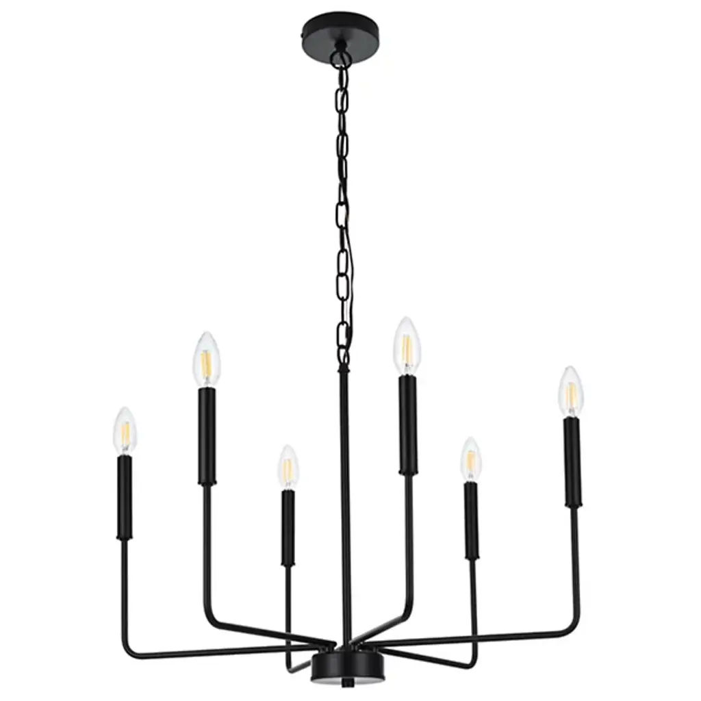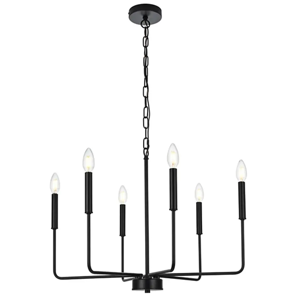 The Villa Chandelier from Huxe shows off intricate Transitional style with its captivating candelabra-style design. Meticulously crafted slender arms of durable iron emerge from a circular hub at the base of a chain and stem suspension, elevating open lamping to all sides. The chandelier is ETL-listed for safety, ensuring structural longevity and peace of mind. At the same time, its six lights offer ample illumination, adding a warm glow to cozy living rooms and high-ceilinged hallways while keeping its intricate, exceptional craftsmanship on full display.