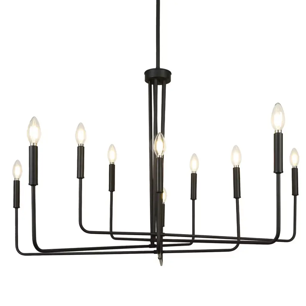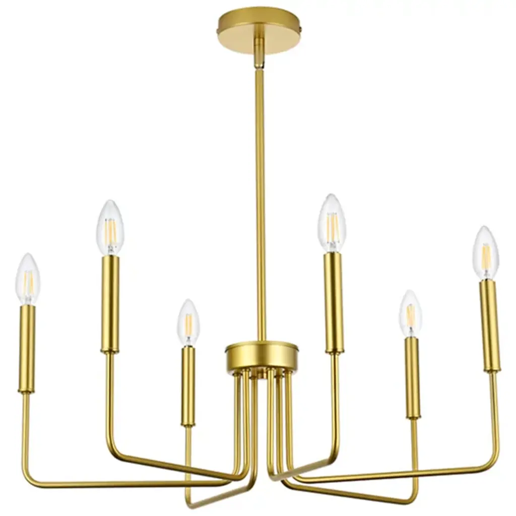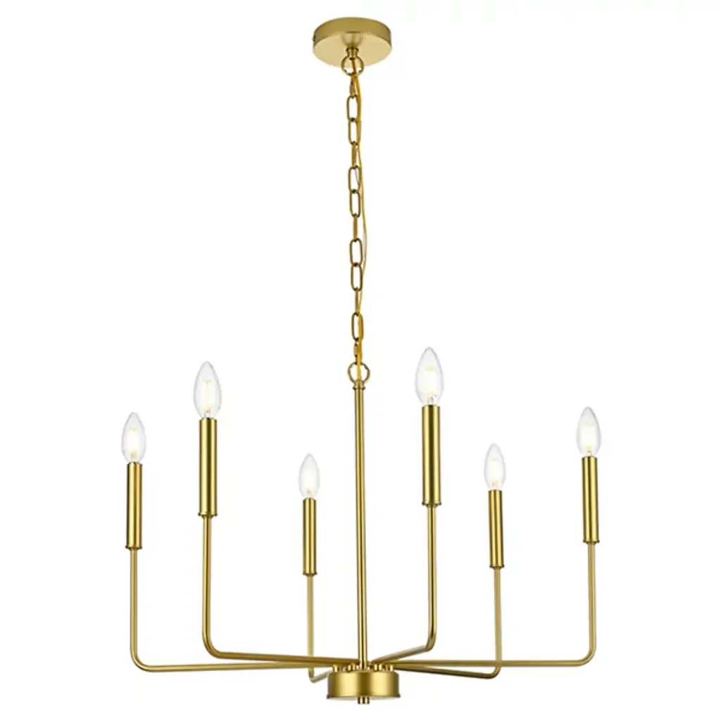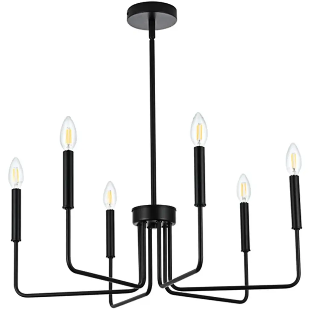 The Villa Chandelier from Huxe shows off intricate Transitional style with its captivating candelabra-style design. Meticulously crafted slender arms of durable iron emerge from a circular hub at the base of a chain and stem suspension, elevating open lamping to all sides. The chandelier is ETL-listed for safety, ensuring structural longevity and peace of mind. At the same time, its six lights offer ample illumination, adding a warm glow to cozy living rooms and high-ceilinged hallways while keeping its intricate, exceptional craftsmanship on full display.
