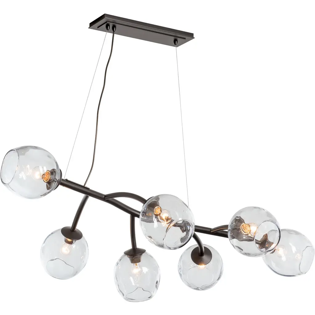 Designed to illuminate your dining table, kitchen island or entryway in beautiful handblown glass and hand-forged metal, our Vine Chandelier was inspired by clusters of grapes growing in the South of France. Each globe is handcrafted by our master glassblowers, and each metal base hand-forged by the Modern American Blacksmiths of nearby Hubbardton Forge.With a commitment to quality and craftsmanship, each piece is made to order - a true one-of-a-kind. Note: Due to the intricate craftsmanship involved in creating the Vine Chandelier, please expect at least six weeks for delivery. This is a custom order and final sale, and express shipping is unavailable for this item. Please contact our Customer Care team to order. At Simon Pearce, fine glassware is still hand-blown in the traditional style. Simon Pearce opened his first glassblowing shop in 1971 in Kilkenny, Ireland. Ten years later, the factory was moved to Quechee, Vermont, where it remains today. The Ottauquechee River provides clean, hydroelectric power for the facility. All Simon Pearce items are proudly made in the U.S.A.