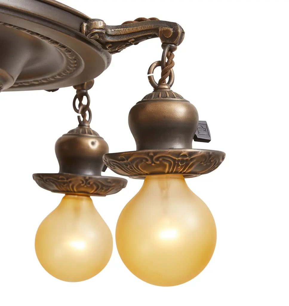 Vintage Classical Revival 5 Arm Bare Bulb Pan Chandelier