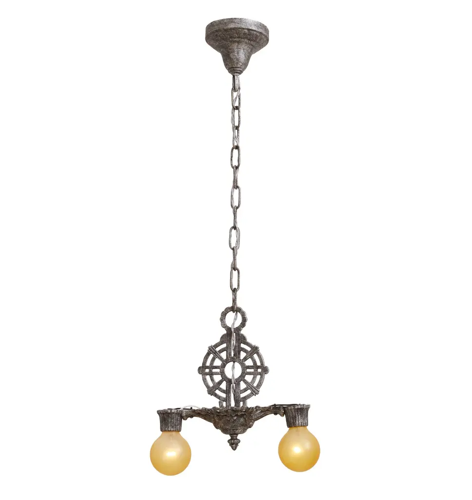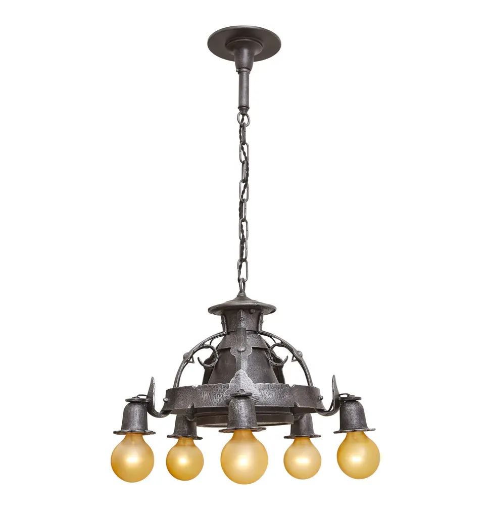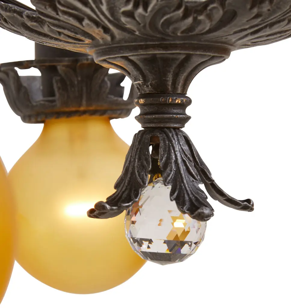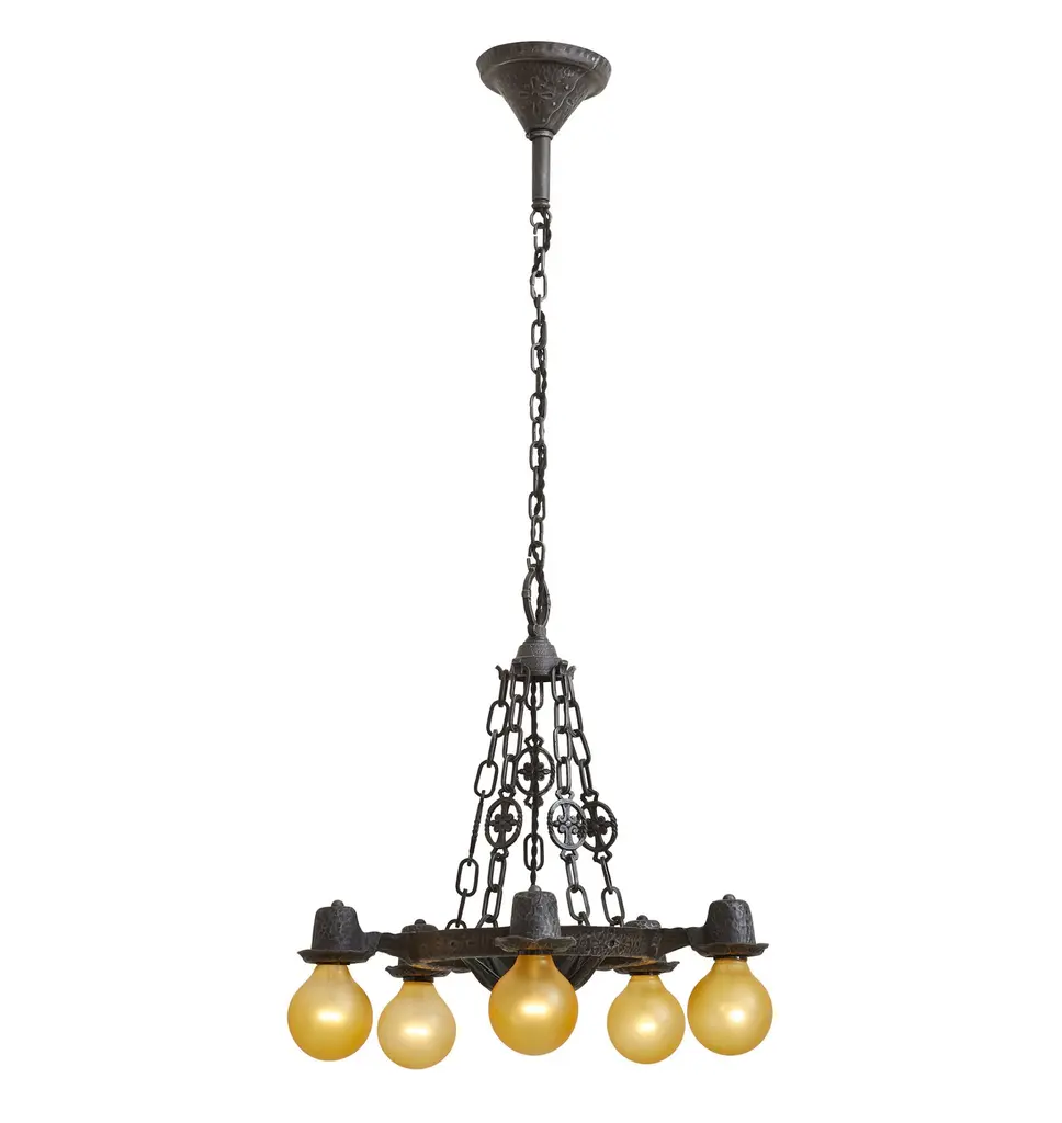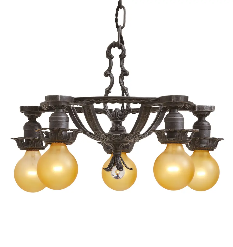 Vintage Classical Revival 5 Light Barebulb Chandelier With Cast Base And Faceted Crystal Finial