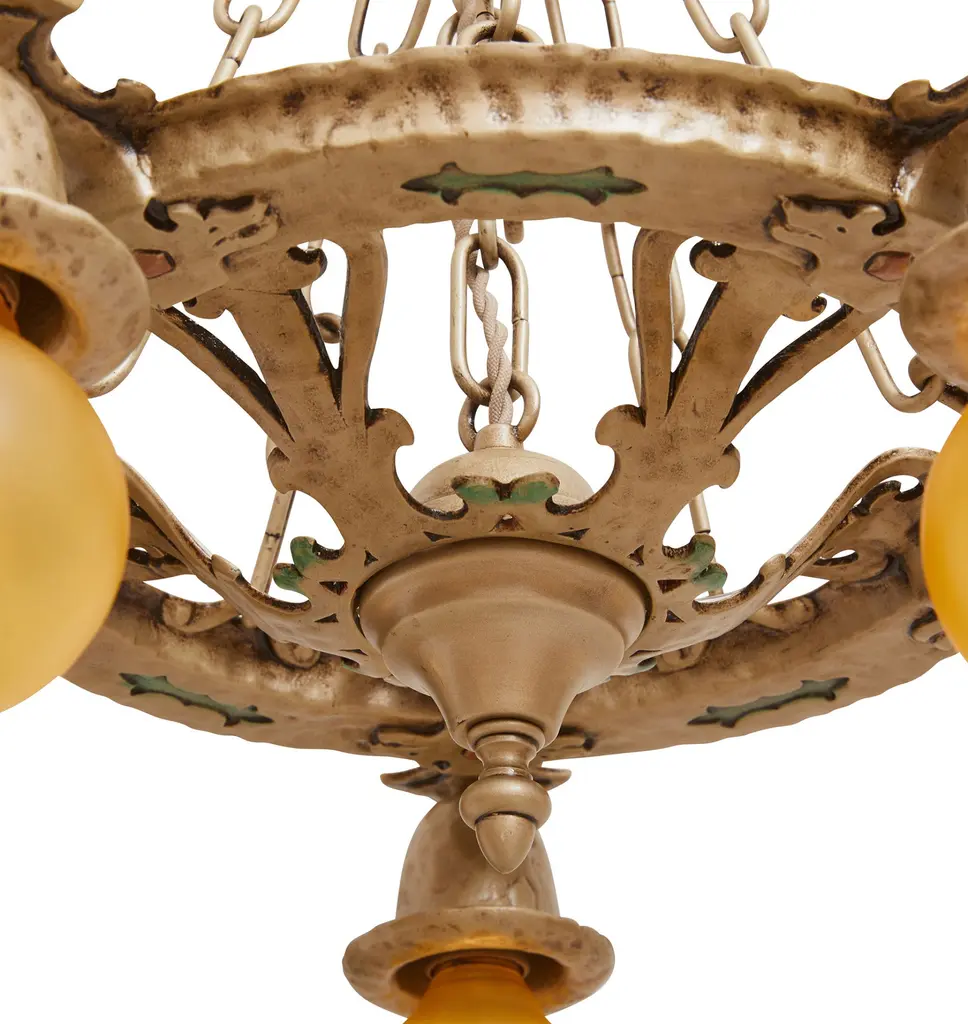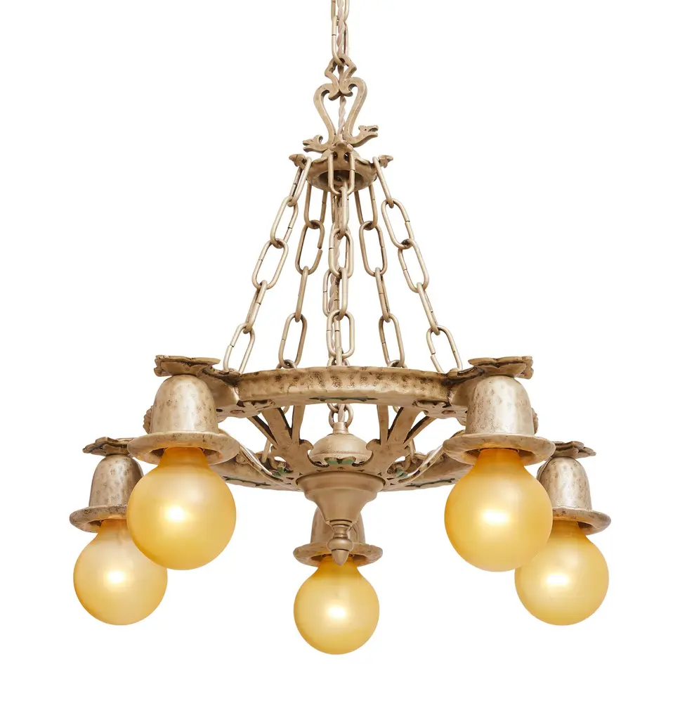 Vintage Classical Revival 5 Light Barebulb Chandelier With Cast Base