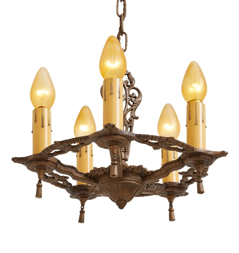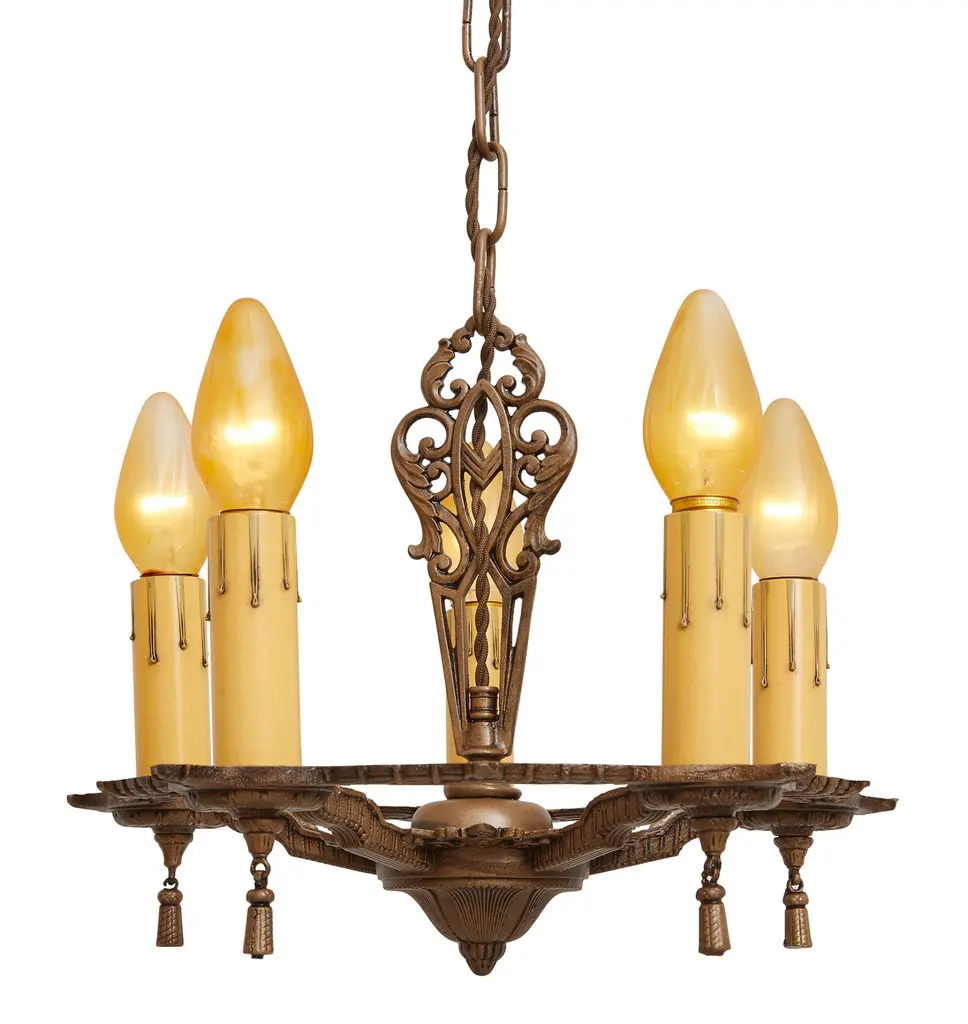 Vintage Classical Revival 5 Light Chandelier Smaller Frame With Decortive Tassles