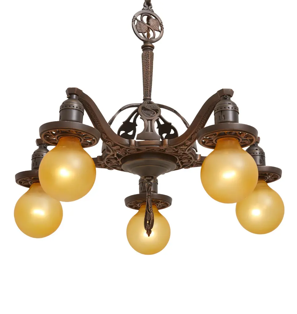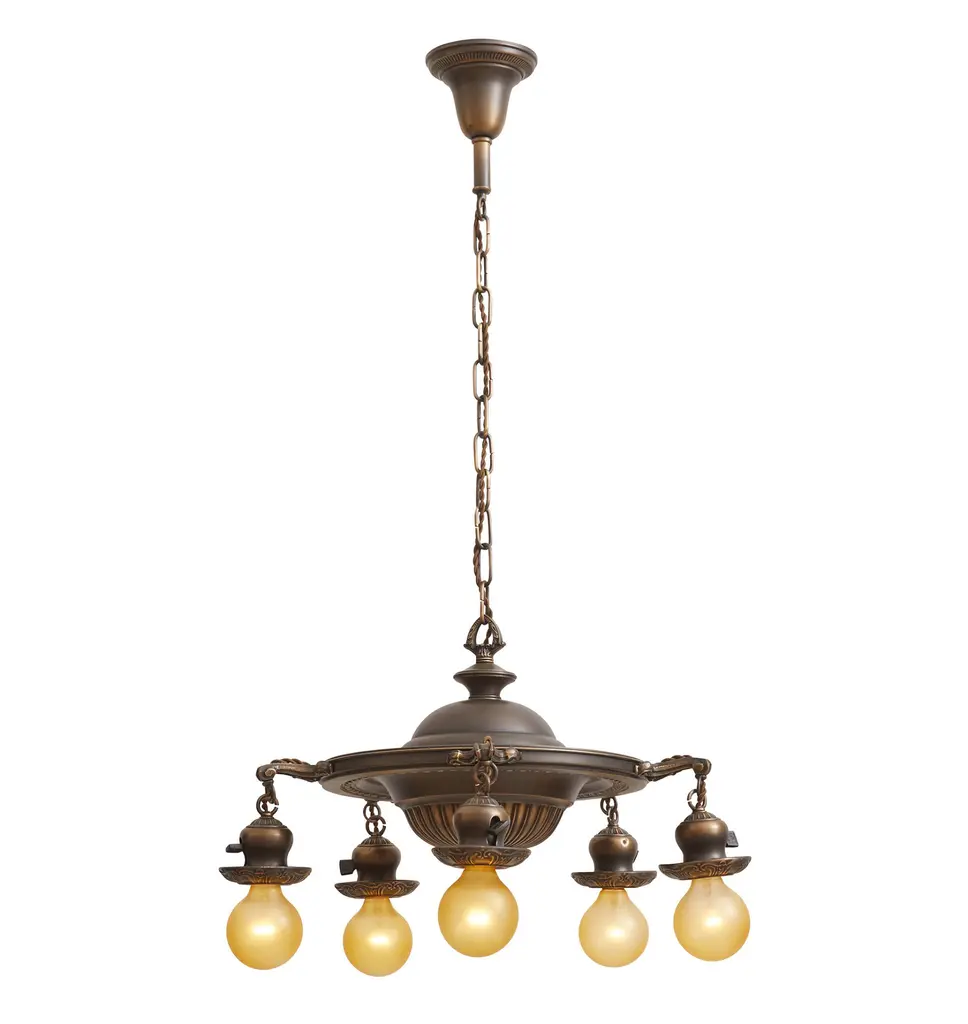 Vintage Classical Revival Cast 5 Light Barebulb Chandelier