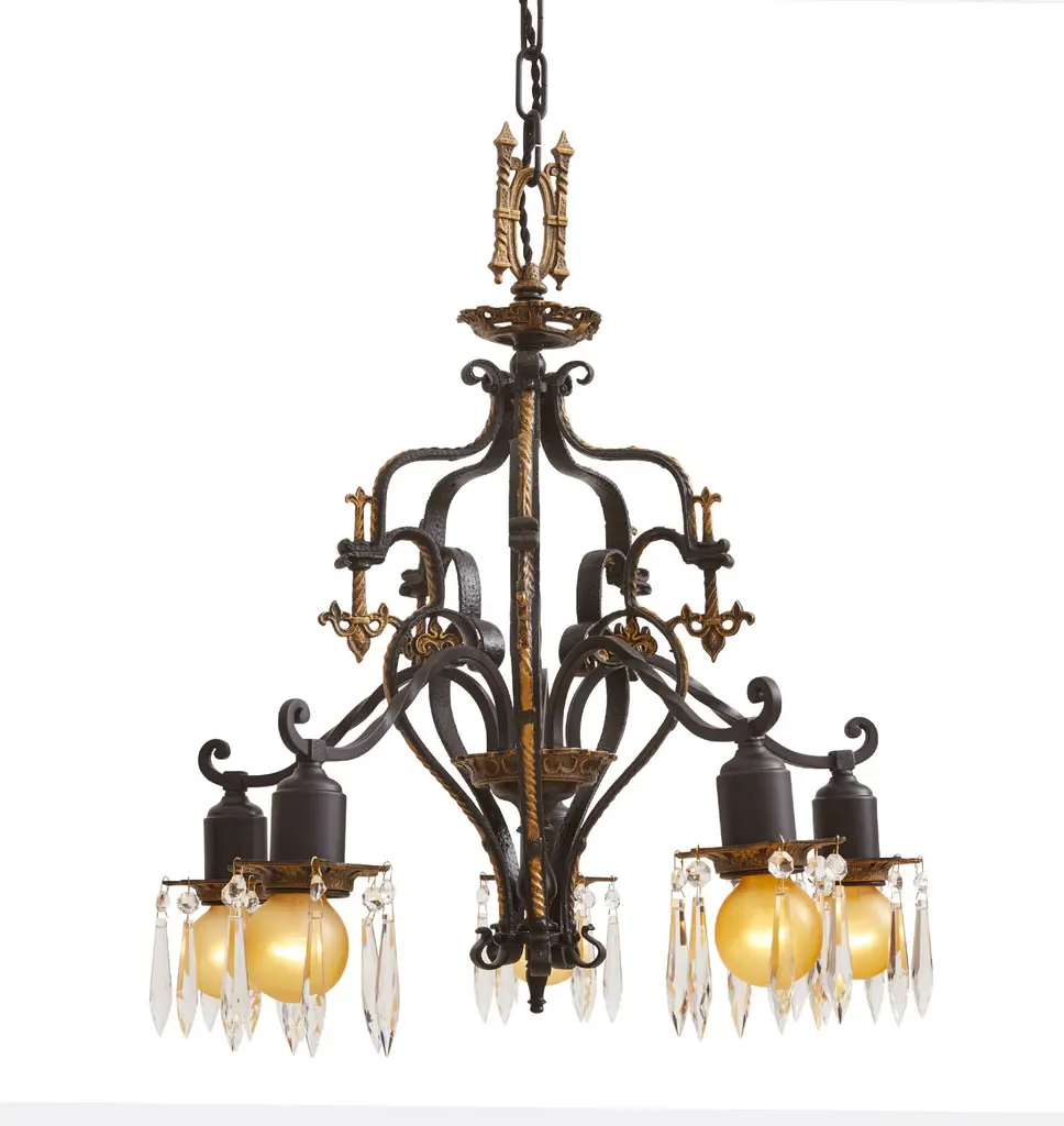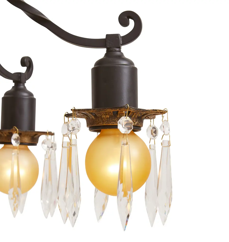 Vintage Classical Revival Chandelier 5 Arm Bare Bulb In Mixed Finish With Decorative Crystals