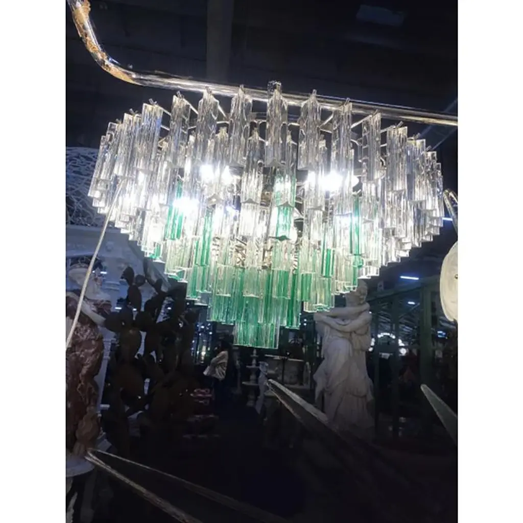 Vintage Green Quadriedro And Clear Triedro Murano Style Glass Chandelier By Simoeng