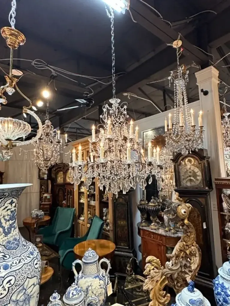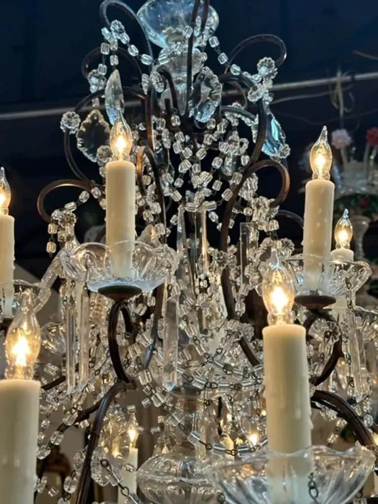 Vintage Italian Beaded Crystal Chandeliers With 16 Lights