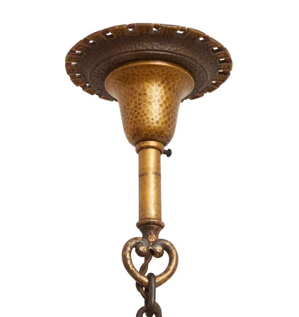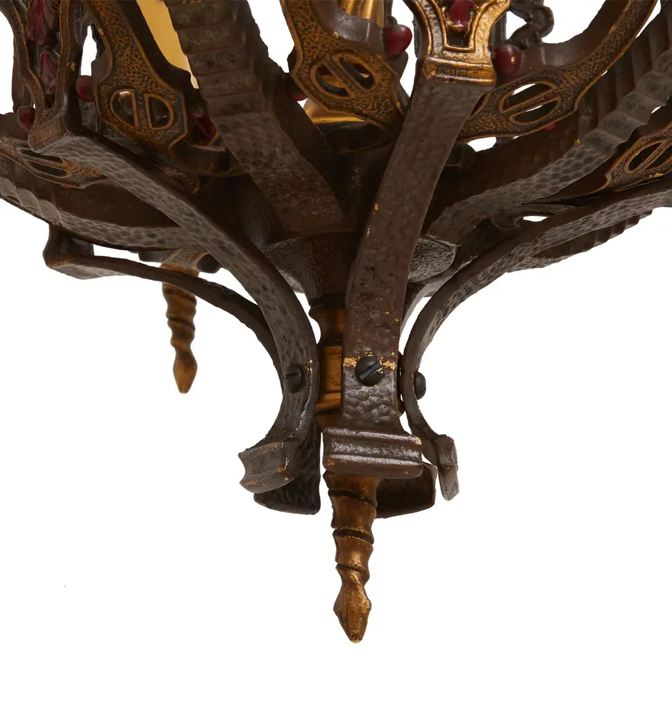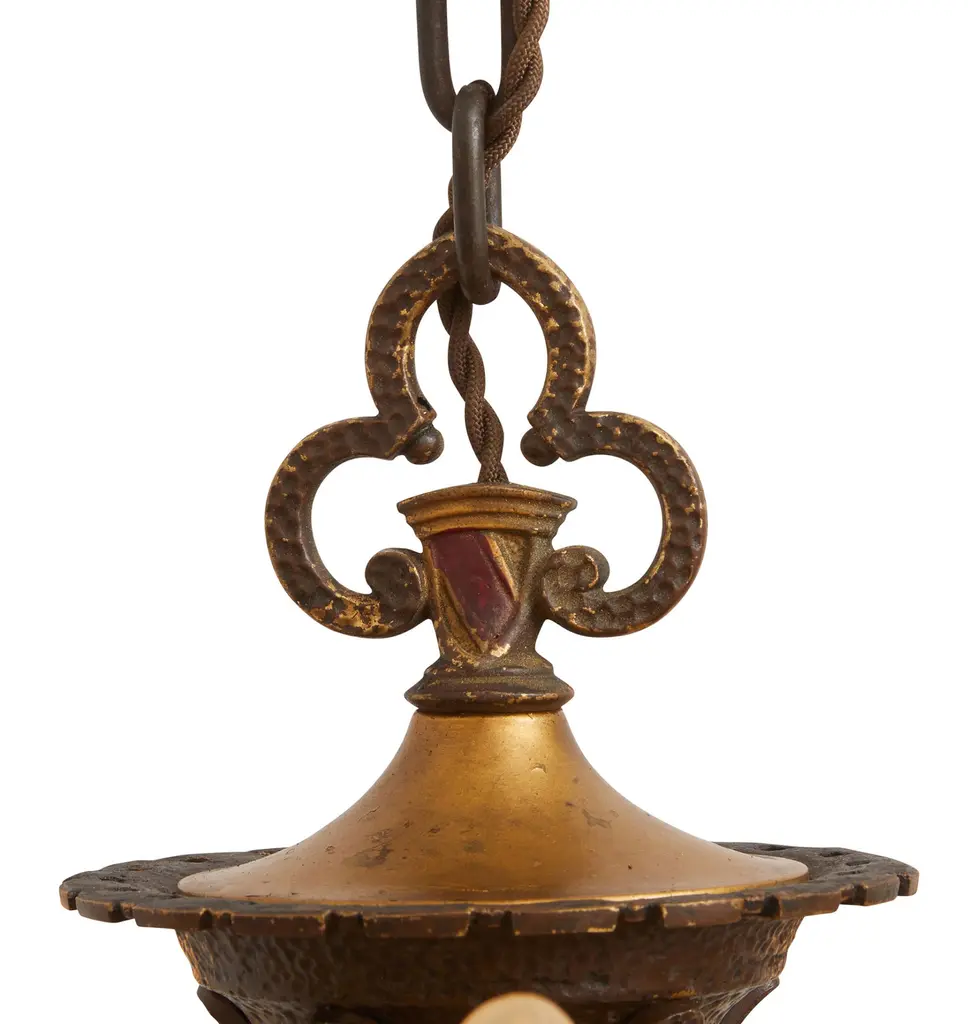 Defining a period from the 1920s and 1940s, Romance Revival design blends an unexpected mix of styles, including Spanish, Tudor, Gothic, Medieval, Moorish, and Hollywood glamour. Elaborate and warm, Romance Revival lighting is often brightly painted with polychrome finishes and capped with artistic flourishes, such as faux rivets and hammering that appear as though they were handcrafted.
