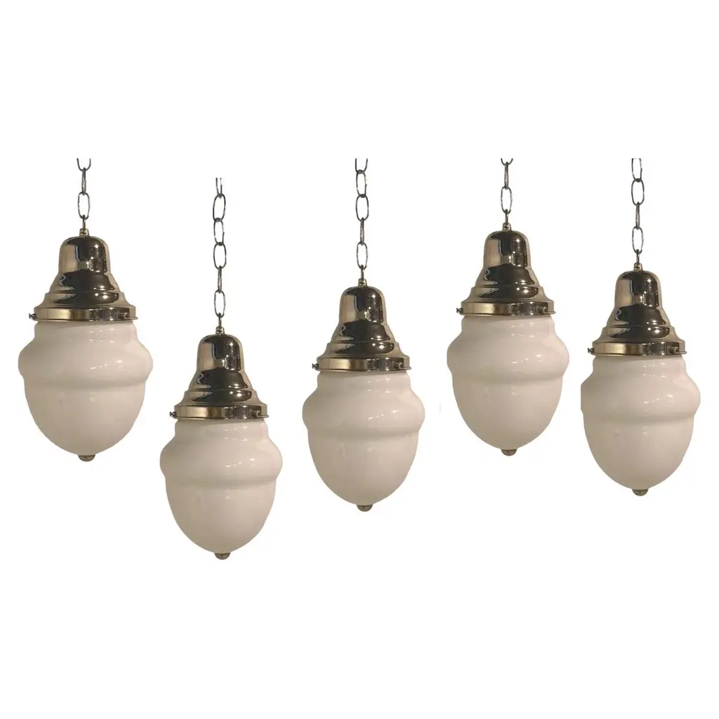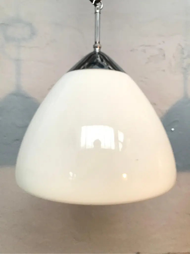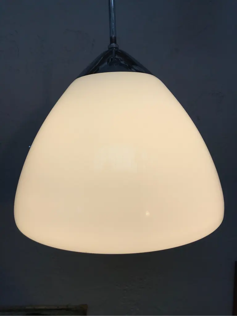 Vintage Vilhelm Lauritzen For Louis Poulsen Opaline Bell Pendent Chandeliers