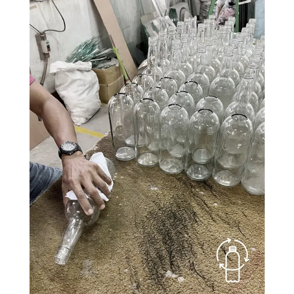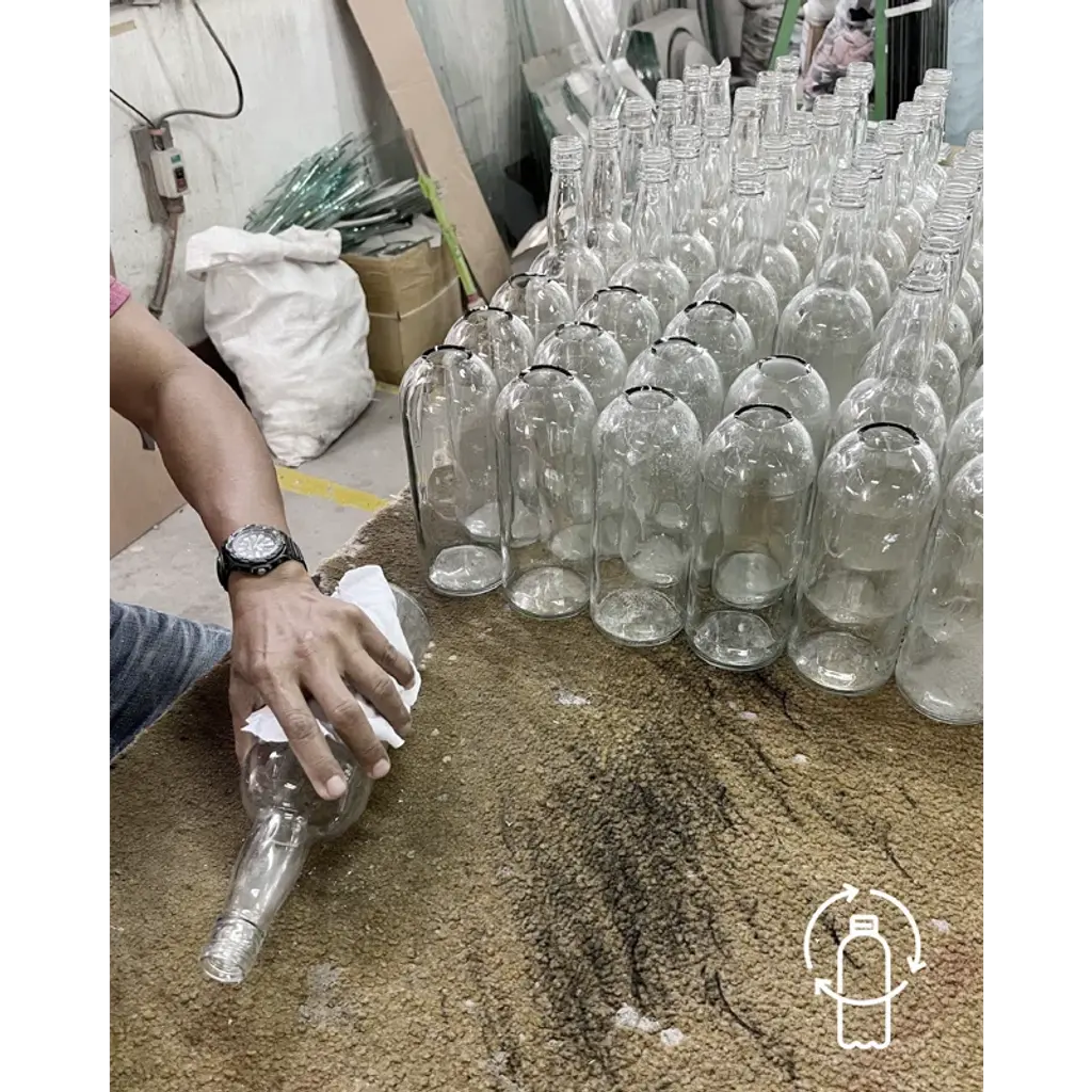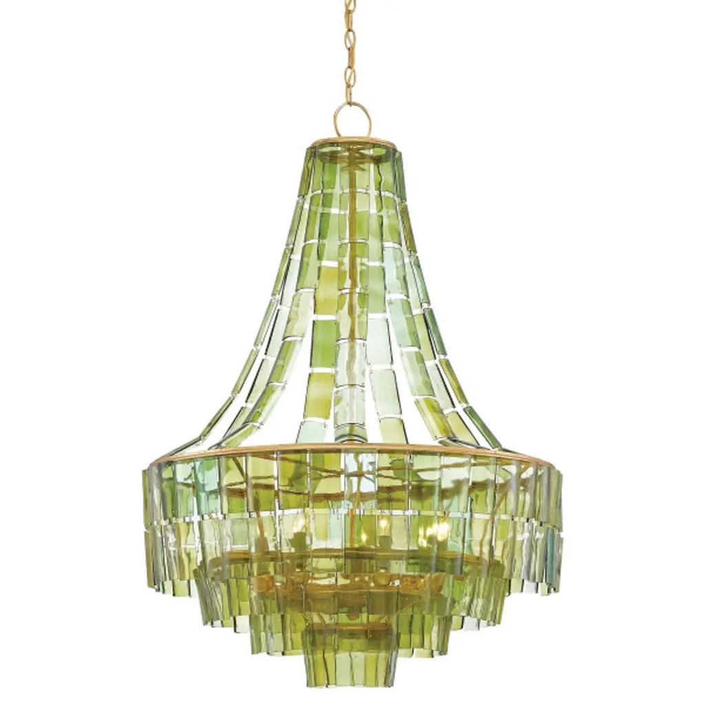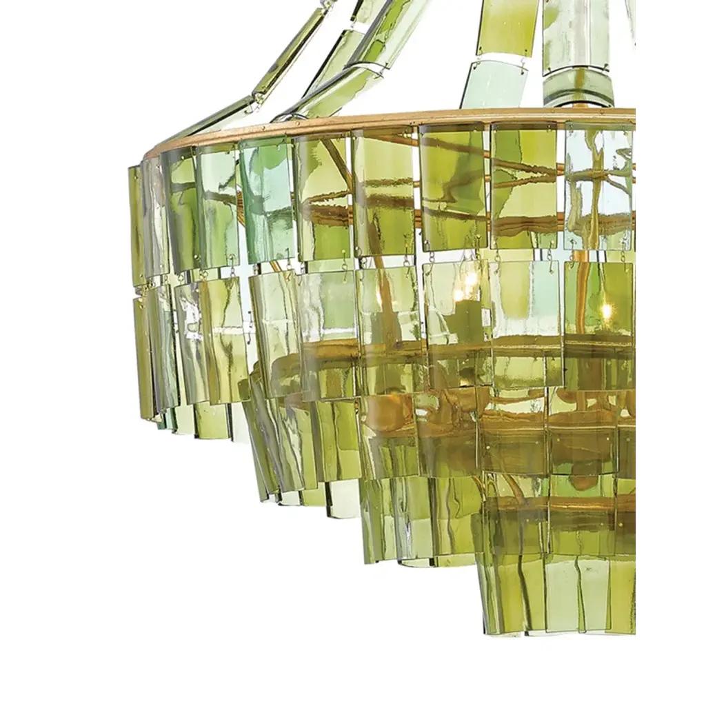 Cascading from the circular frames of the Vintner Blanc Chandelier are individually-cut pieces of glass made from recycled bottles. The texture of the surfaces beautifully complements the contemporary finish on the wrought iron frame.