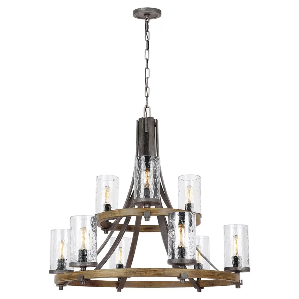 Visual Comfort Studio Angelo Rustic Distressed Weathered Oak 2 Tier Chandelier