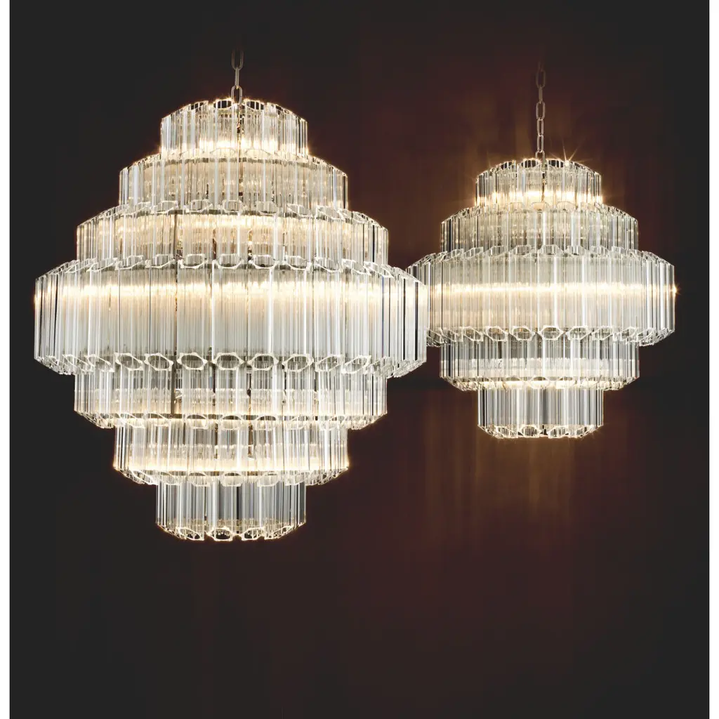 Channel glamour and grandeur into your home dÃcor with the Vittoria chandelier. Featuring a dazzling design with ribbed and bevelled clear glass tubes, this lush chandelier creates a stunning glow in any interior it adorns.
