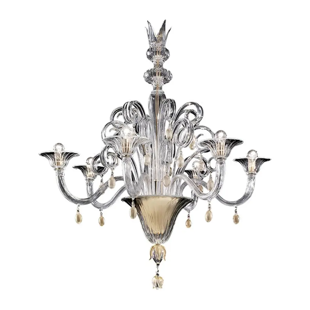 Vittoriele is a chandelier, designed by Napoleone Martinuzi in the late 1920s, is now installed in the Map of the World room in the Vittoriale degli Italiani in Gardone Riviera.Construction of Gabriele D’Annunzio’s Vittoriale degli Italiani started in the 1920s. In the same decade, Napoleone Martinuzzi designed a unique work that draws inspiration and owes its name to this stately residence. A fine blend of art and matter that still captures the viewer’s attention. Vittoriale is available as a chandelier and a wall light.Colors:Crystal / GOLD leafCrystal / Milk-WhiteLight source:99.60.01.06 - 6 x max 8W LED E1499.60.01.12 - 12 x max 60W LED E14Edition numbered by year