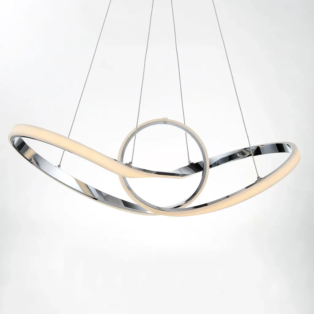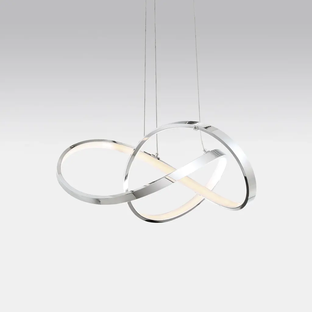 Crafted from a free flowing mobius strip of high powered LED lights, the Vornado LED Chandelier from WAC Lighting is a simple, yet dynamic piece ready to elevate any room in your home. Handcrafted to perfection, the silicon diffuser maximizes brightness and eliminates any LED hot spots. Suspended on four thin, low profile cables without the need for an additional power cord, this pendant is perfect for installing above a living room seating group, dining room table, or above a guest bedroom sleep space. Adjustable to different lengths through a push-pin locking mechanism at the canopy, this dimmable design is ready to imbue your home with abstract contemporary style. Features