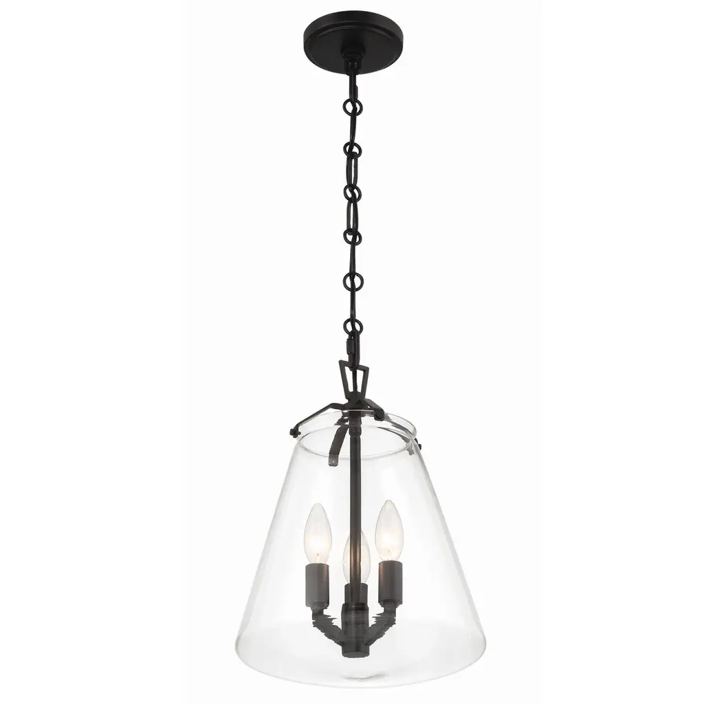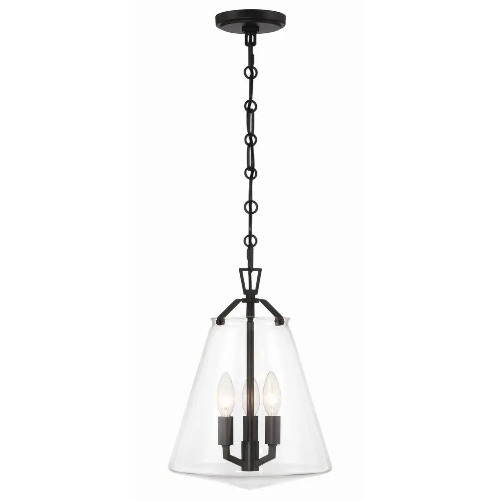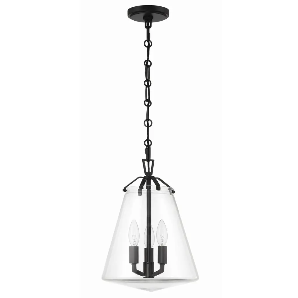 The Voss Collection is a sleek, enduring design with subtle angular details, offered in various finishes and sizes for your unique space. Its clear glass cone-shaped pendant is closed on the bottom and fastened with metal on its open top. The patterned chain detail adds a touch of character to its streamlined design. The Voss Collection is not confined to a single style; it is a versatile design that suits a variety of spaces, from minimalist and modern to classic and eclectic.