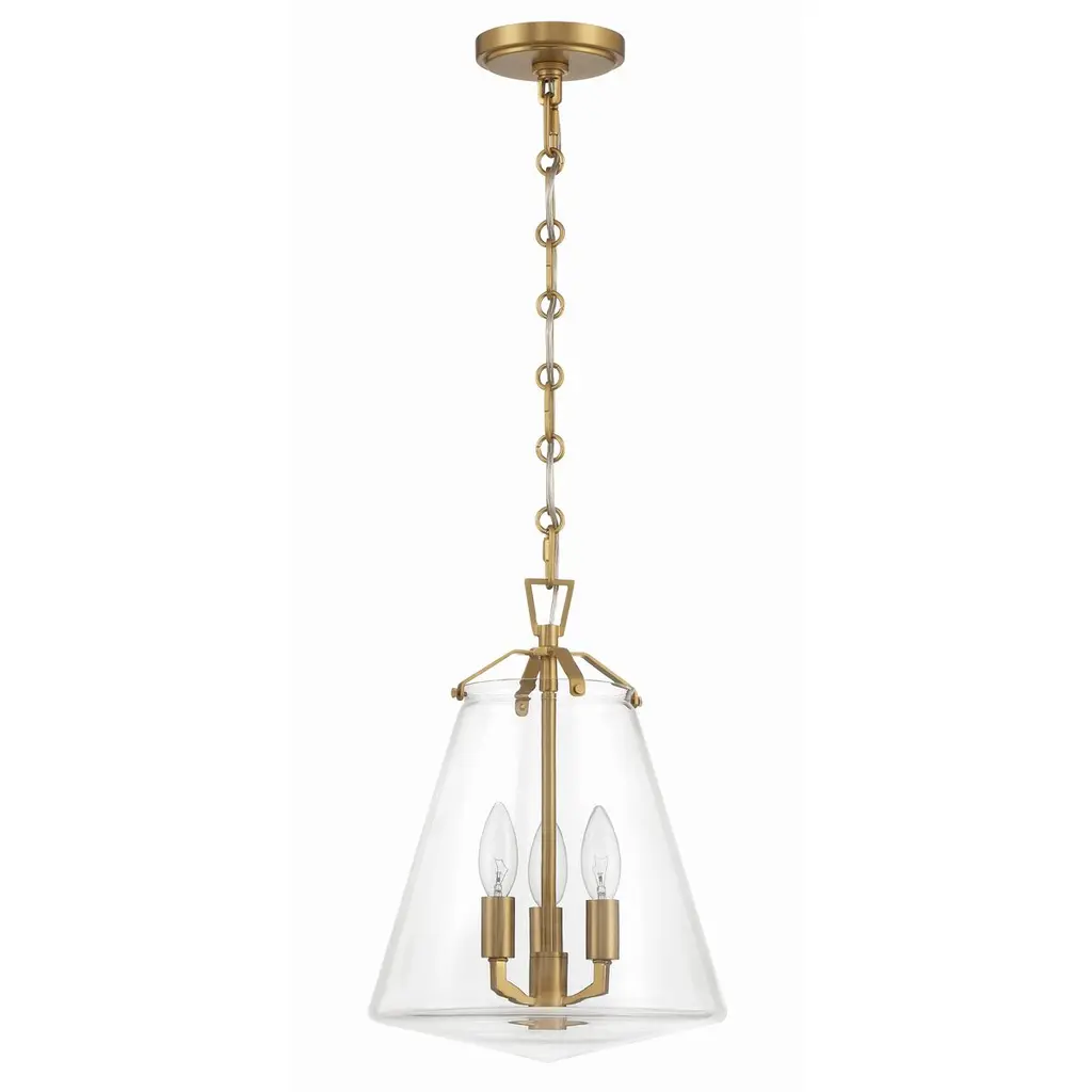 The Voss Collection is a sleek, enduring design with subtle angular details, offered in various finishes and sizes for your unique space. Its clear glass cone-shaped pendant is closed on the bottom and fastened with metal on its open top. The patterned chain detail adds a touch of character to its streamlined design. The Voss Collection is not confined to a single style; it is a versatile design that suits a variety of spaces, from minimalist and modern to classic and eclectic.