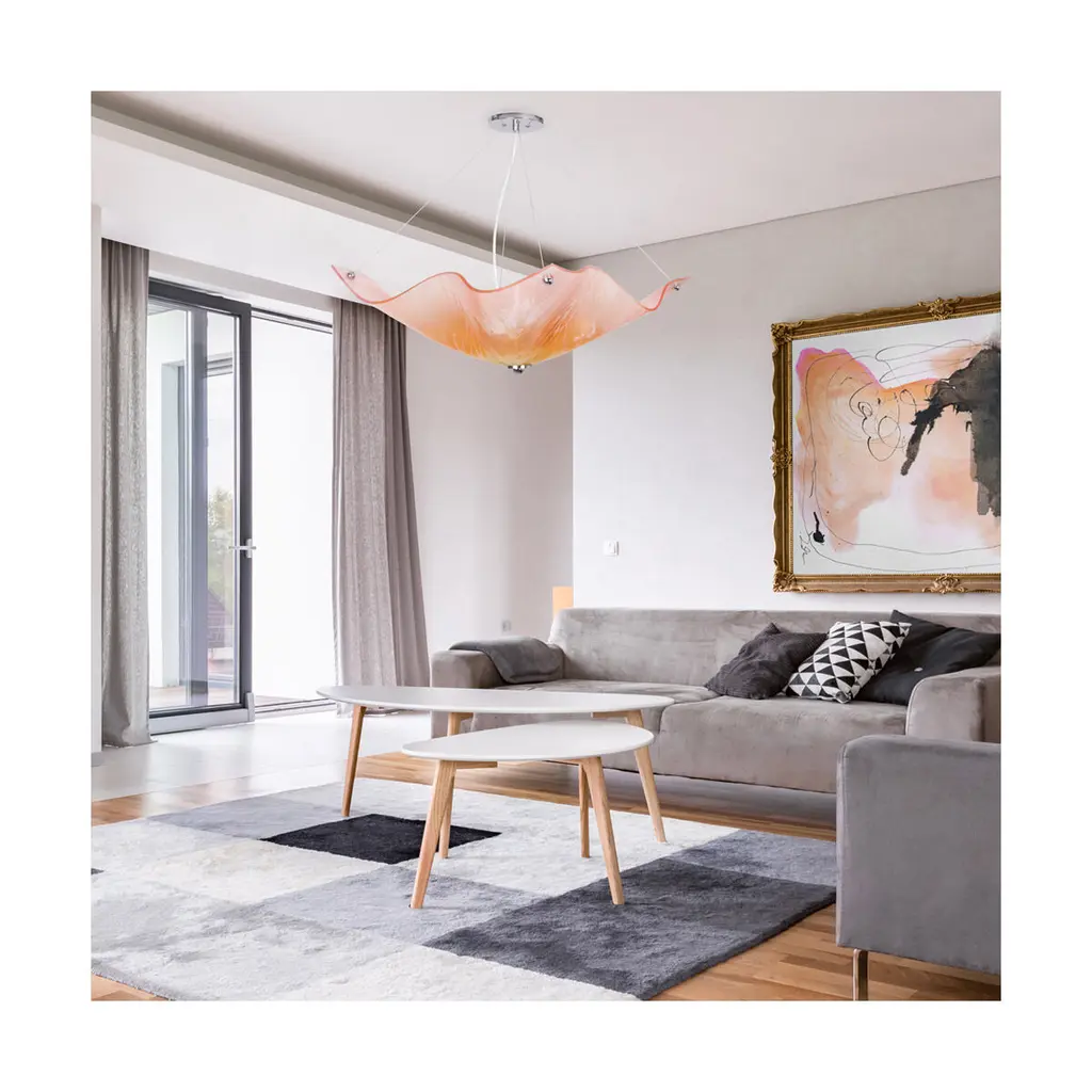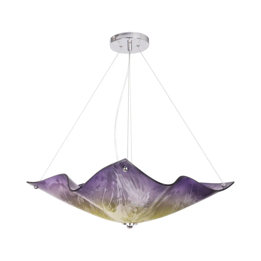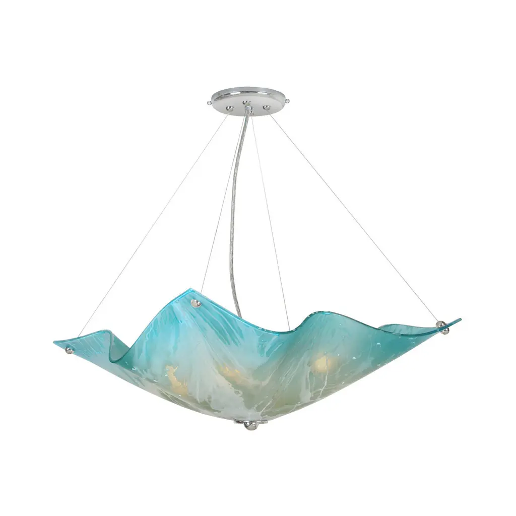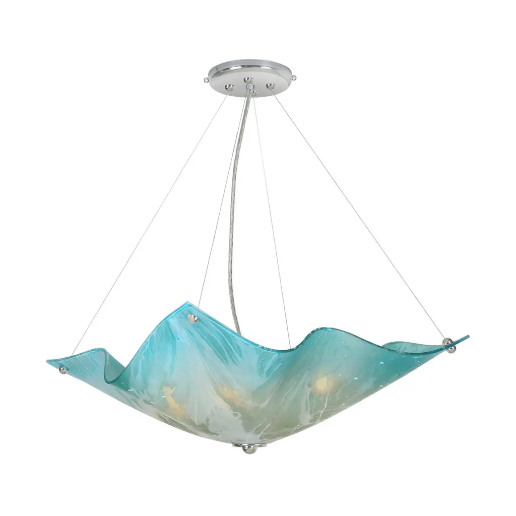 Make waves in any room with the three-light Van Teal Simply Chandelier in a soft Pink Splendor hue. This minimalist chandelier maintains a clean, modern flow that's slightly softened by the rippling design of the shade. The sleek, sturdy frame is finished in gleaming chrome to top off your décor with a hint of polished sophistication. This chandelier requires (3) 100 Watt Incandescent or 16 Watt LED equivalent bulbs (not included). Comes with a one year limited manufacturer's warranty.