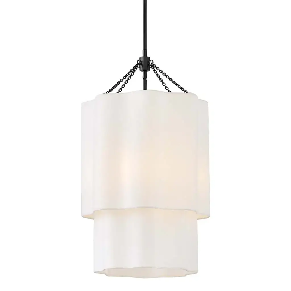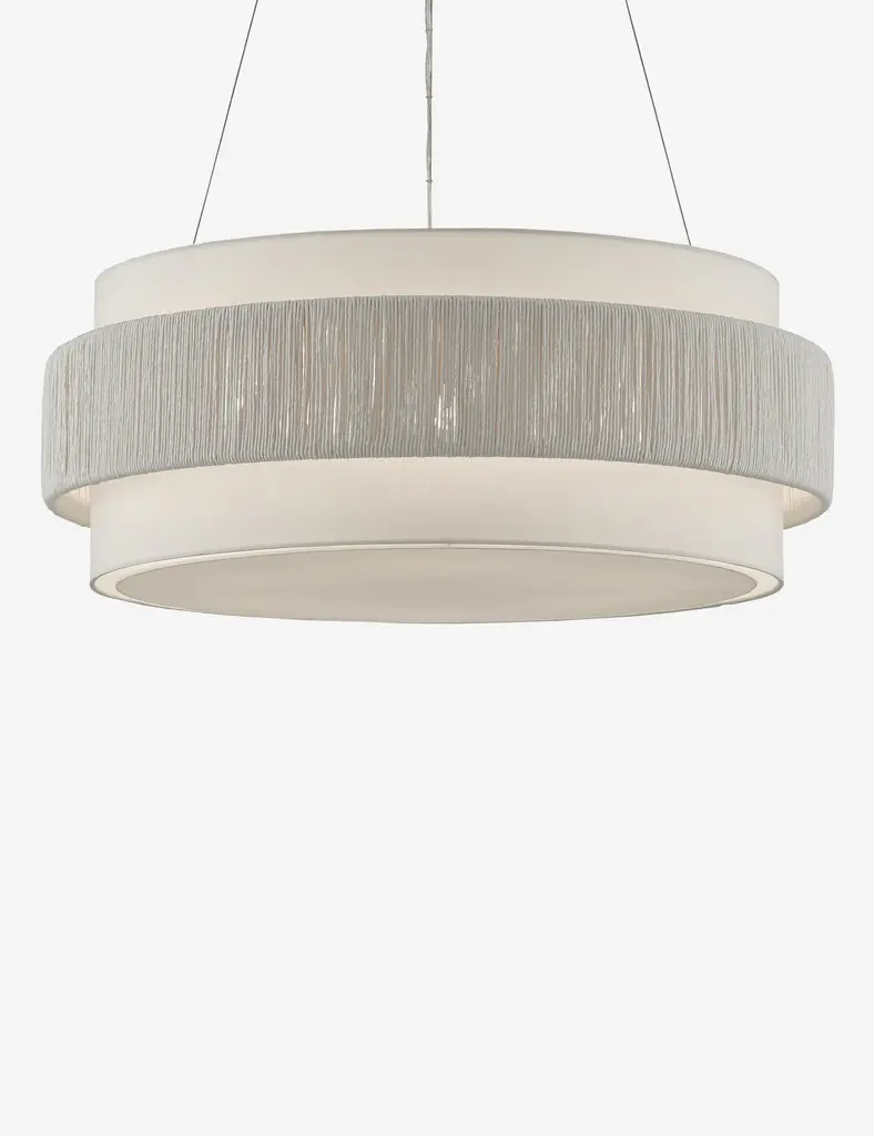 Sleek lines meet textural intrigue in this quietly modern chandelier. The fabric shade is accented by a twine-wrapped ring that adds a touch of contrast to the clean, drum-like silhouette. Style this chandelier above your dining room or lounge for an understated yet elevating centerpiece in your lighting design.