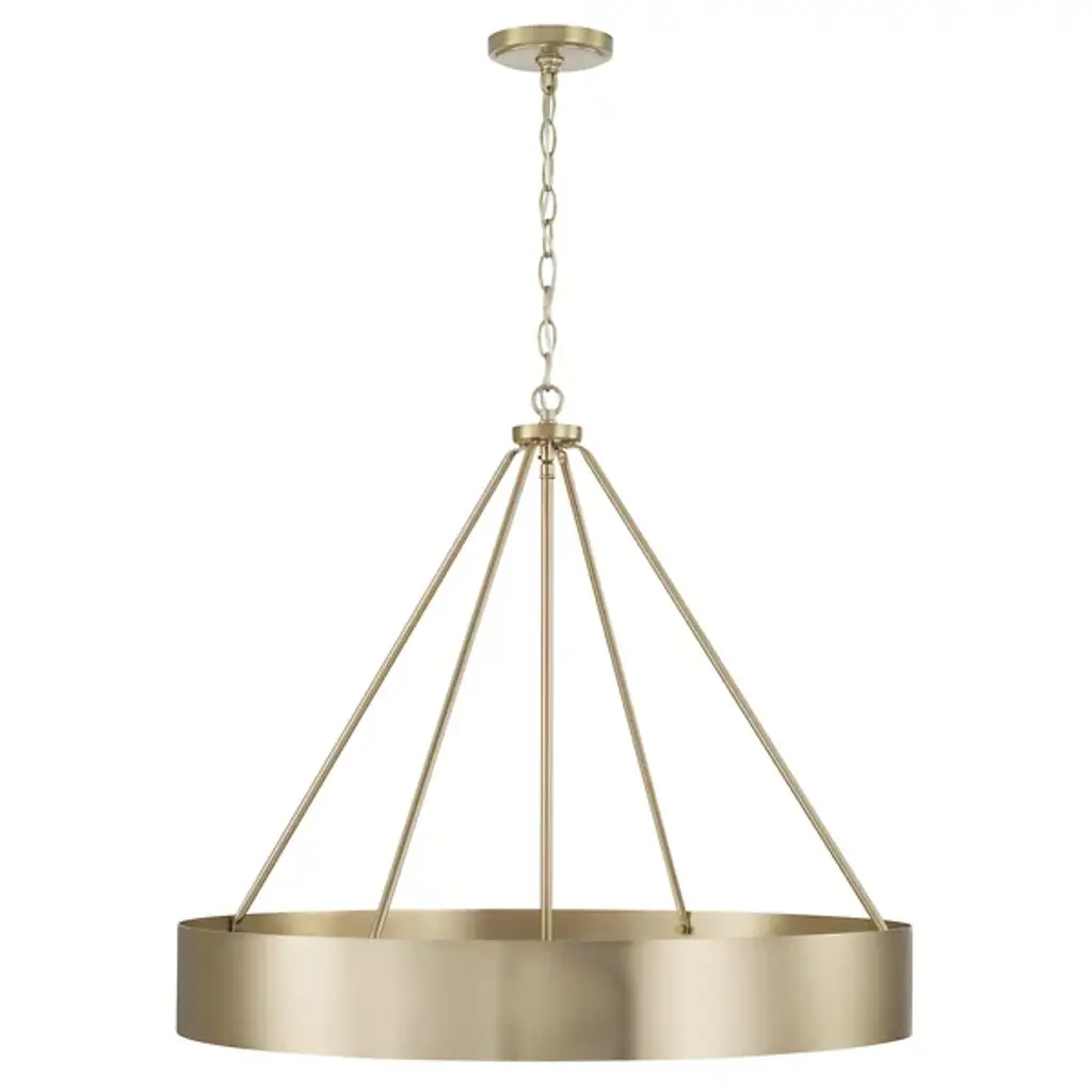 The Weller Chandelier from Capital Lighting marries geometric precision with artistic flair, featuring a circular figure punctuated by clean, angled lines. Apt for spaces craving a contemporary touch, this chandelier becomes an instant conversation piece in dining rooms, living areas, or grand entryways. Its open design maintains an airy feel, making it suitable for both spacious and intimate settings. The Weller Chandelier is a sculptural element that defines your space, embodying the perfect balance between form and function.