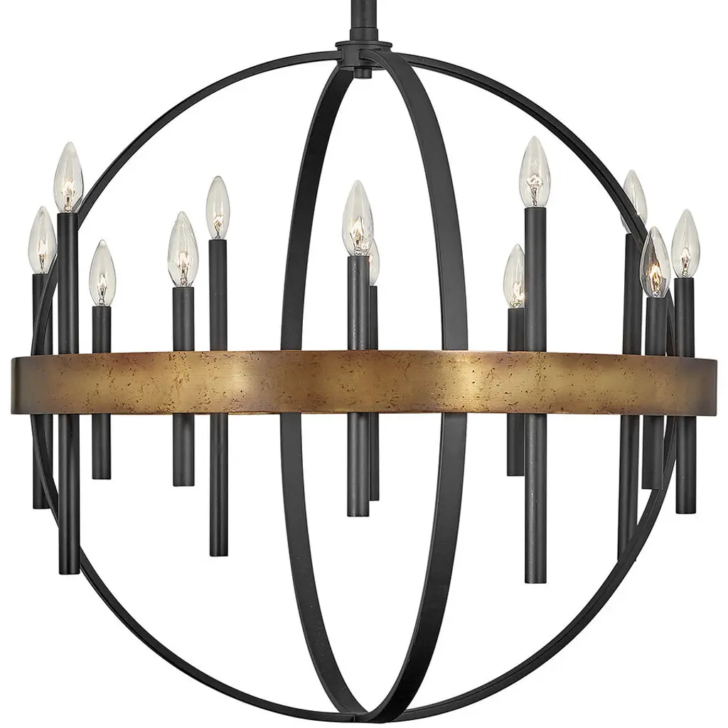 Wells 12 Light 30 Inch Weathered Brass With Black Indoor Chandelier Ceiling Light