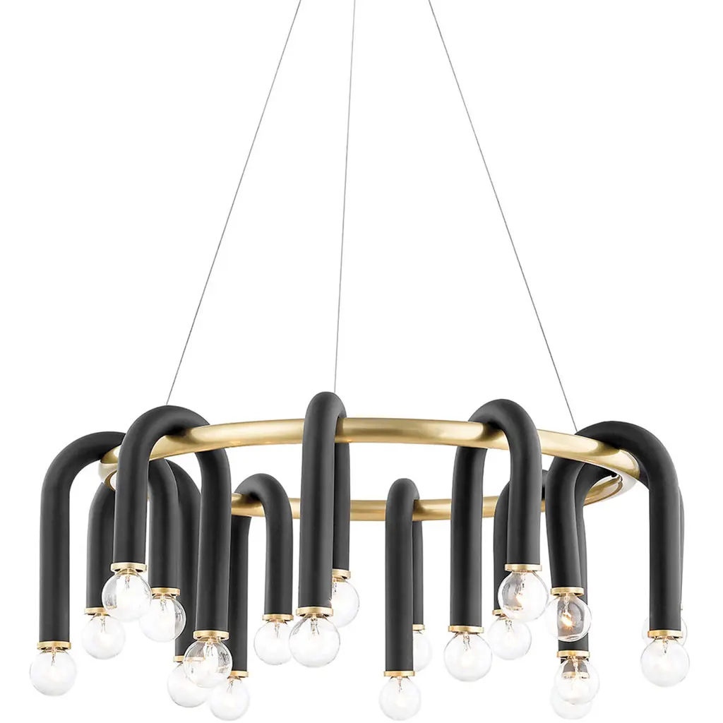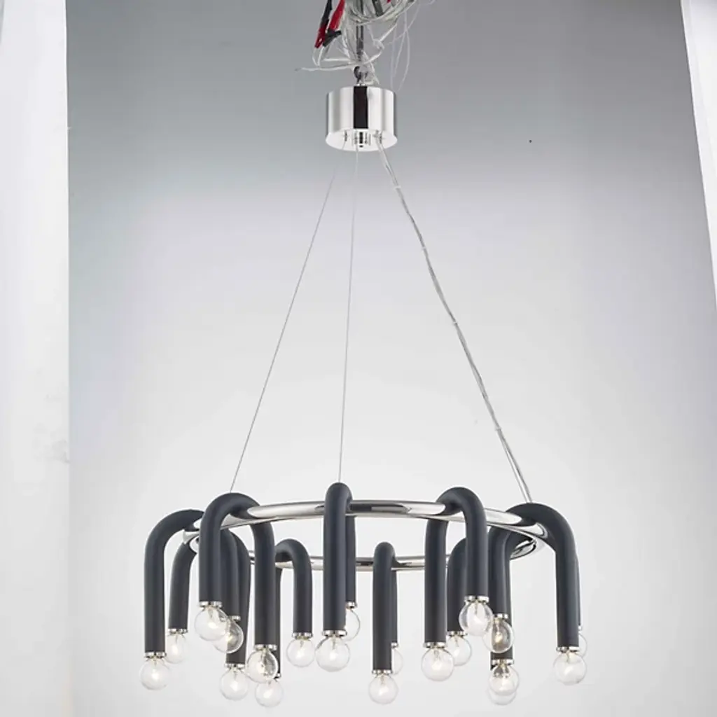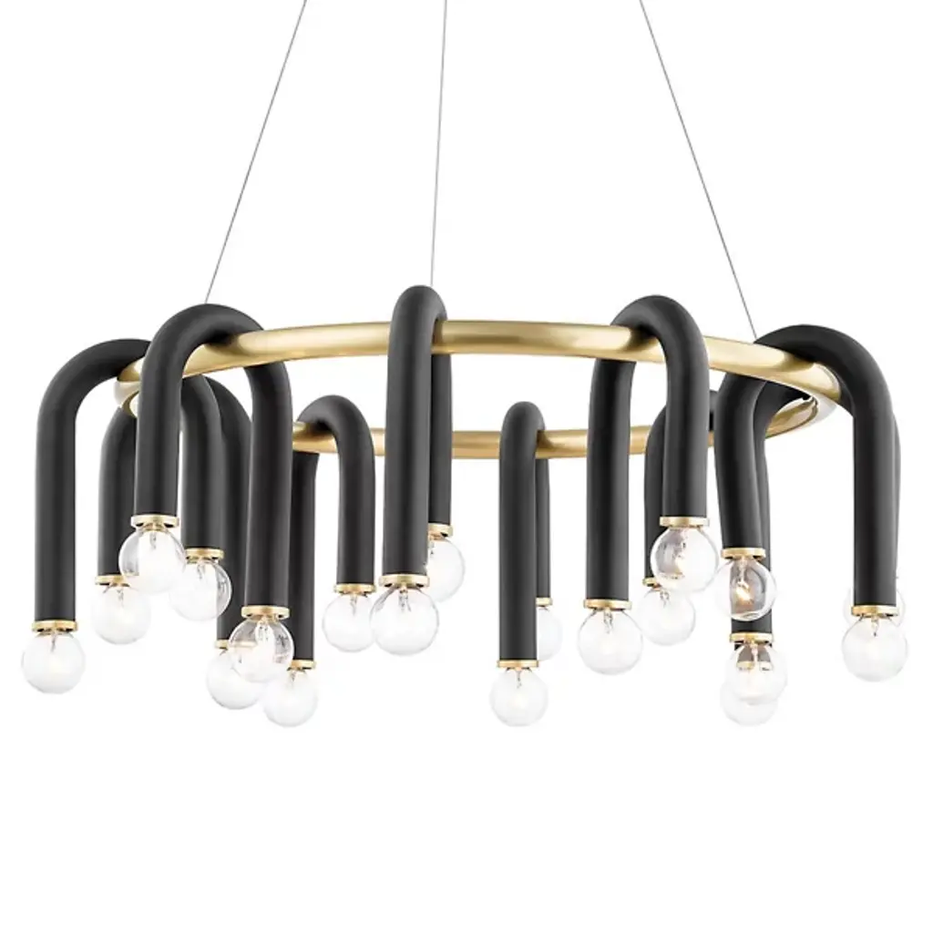 A bold statement piece for foyers, dining rooms, bars and much more. The Whit Chandelier from Mitzi uses an ambitious design to redefine our understanding of what contemporary design can be. Framed around a Metal tube with a delicate wire suspension, the star of the show is a collection of Matte Finish Metal tubes, each of which is folded over the frame and home to two filament-style round candelabra bulbs. The result is a uniquely impactful modern centerpiece with a certain industrial quality that’s perfectly at home in foyers, formal dining areas, high ceiling lofts and beyond.