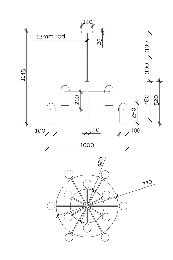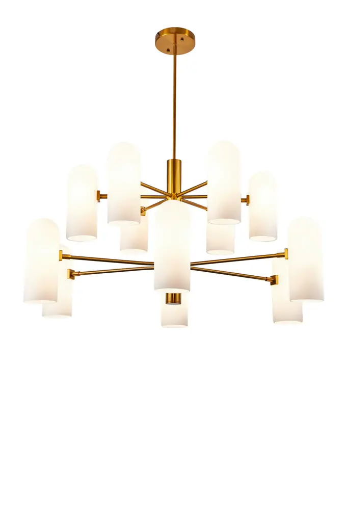 The Pawson Chandelier is a daring blend of mid-century modern beauty and maximalist charm. This striking piece will look great in a living or dining room. It has a beautiful brass finish and 12 glass tubes. This piece takes on the shape of tradition, with a hint of vintage charm. It has a striking design with smooth curves that contrast with the luminous coloration of the brass accents.