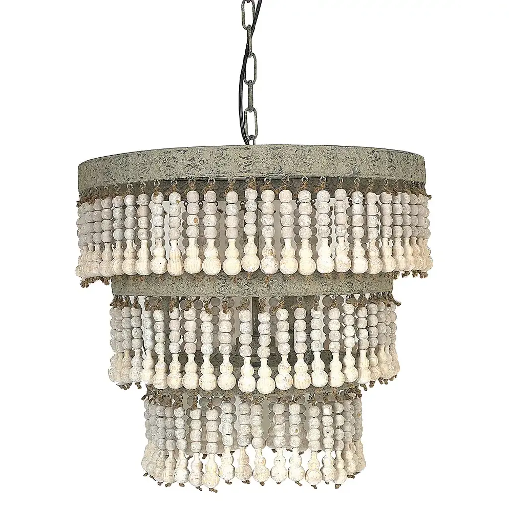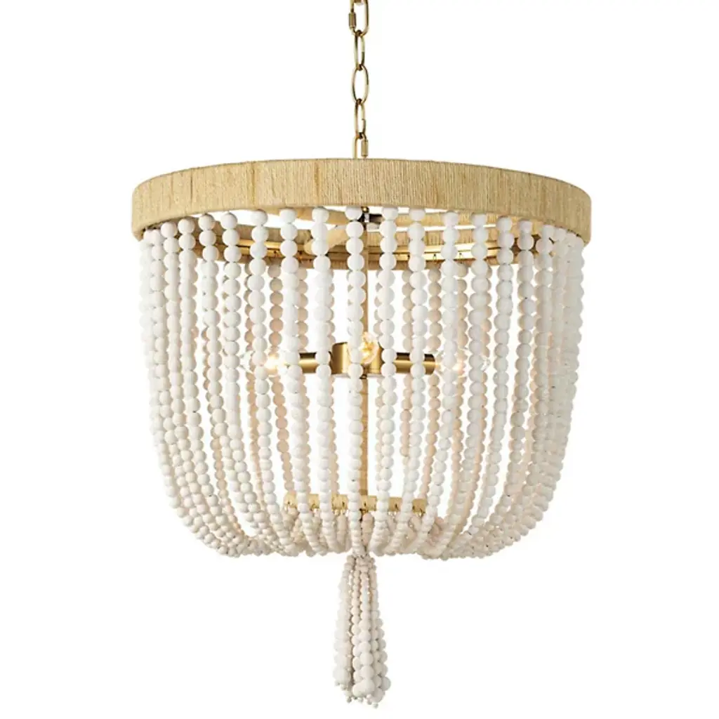 Whitewashed Wood Draped Bead 4 Light Chandelier