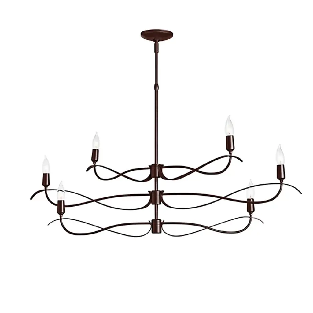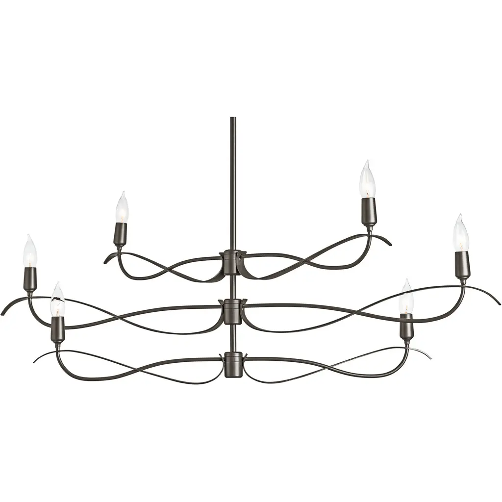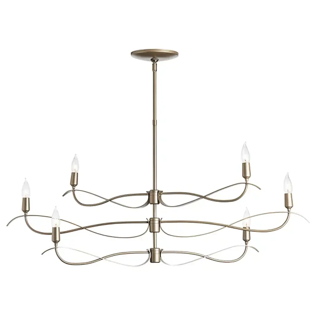 The Willow 3-Tier Chandelier by Hubbardton Forge brings a balanced mix of simplicity and sophistication to the spaces it brightens. Supported by a single down rod, a series of handcrafted arms gracefully extend to support exposed candelabras. These outstretched arms are given a dynamic touch as elegant metal willow leaves cross them in a smooth series of curves that give this design an airy, organic look. Each tier varies in size, bringing spaces a dimensional display as it casts an even layer of illumination onto surroundings.