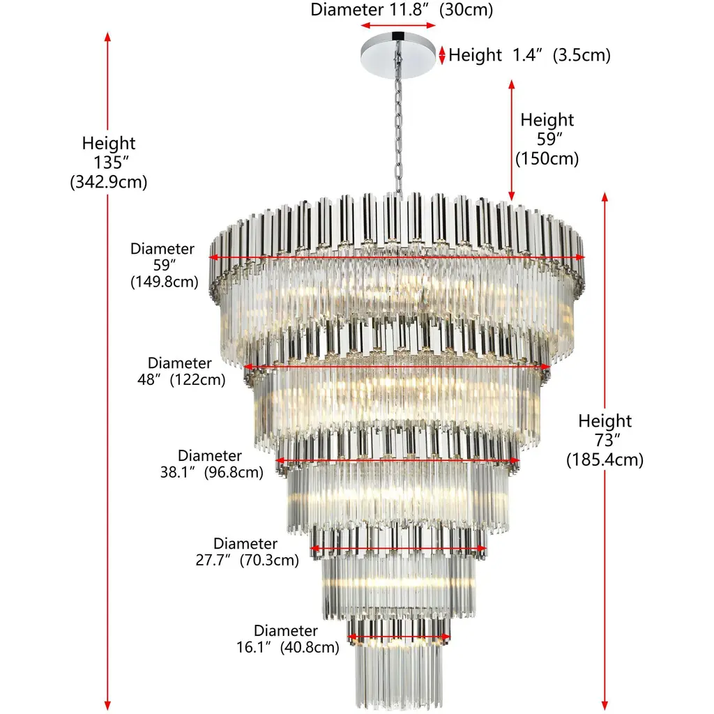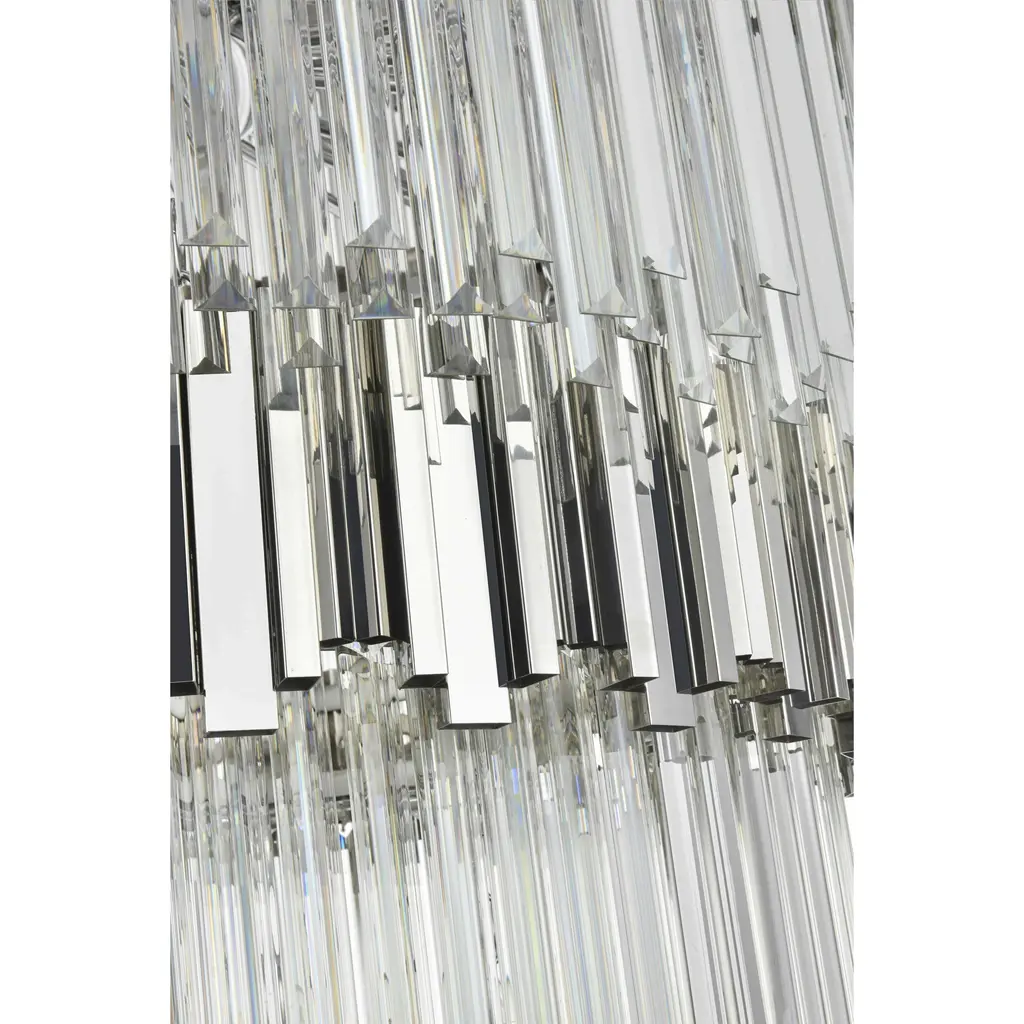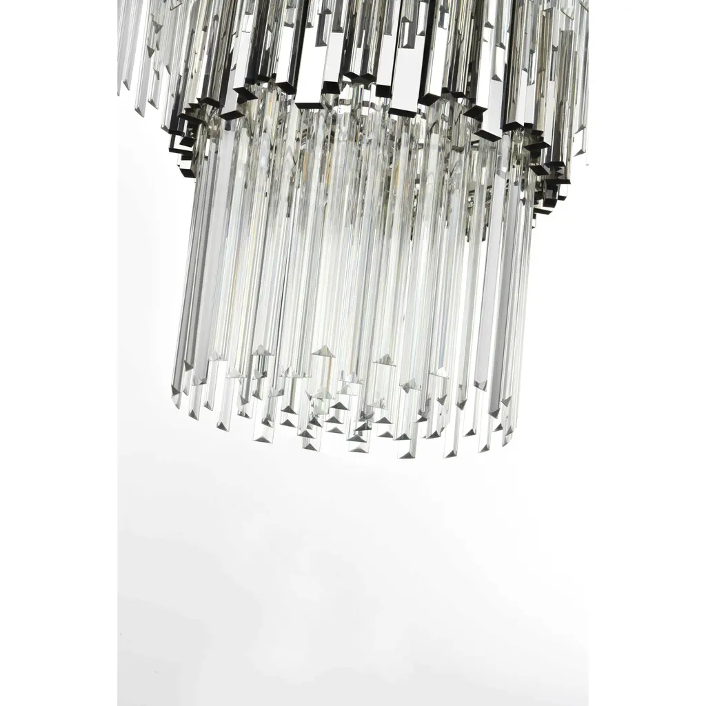 Transform your space with this stunning chandelier, a dynamic fusion of iron and staggered clear glass that exudes contemporary style and architectural artistry. The layered glass refracts light beautifully, creating a radiant display of glowing brilliance that fills the room with warmth and sophistication. The staggered arrangement of the metal and glass adds depth and dimension, making this chandelier an eye-catching centerpiece. Fully dimmable, it allows you to adjust the ambiance to suit any mood, from bright and vibrant to soft and inviting. Available in satin gold for a warm, luxurious vibe, chrome for sleek modernity, and black for bold, dramatic contrast, this fixture comes in various sizes to perfectly complement any space. Complete with a matching canopy, its an ideal choice for dining rooms, living rooms, or offices. Add a touch of refined geometry to your décor and bask in the brilliance of this radiant design.
