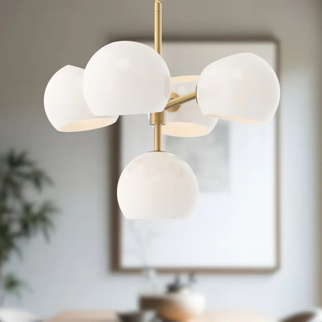Channel your inner space explorer with this stunning Sputnik chandelier. With its metal frame and glass shades, it creates a celestial ambiance in any room. The adjustable length and compatibility with sloped ceilings make it versatile for any space. Bulbs not included.