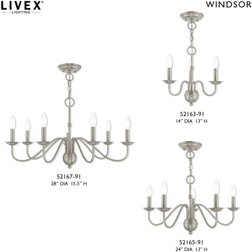 Windsor 3 Light 14 Inch Brushed Nickel Mini Chandelier Ceiling Light
