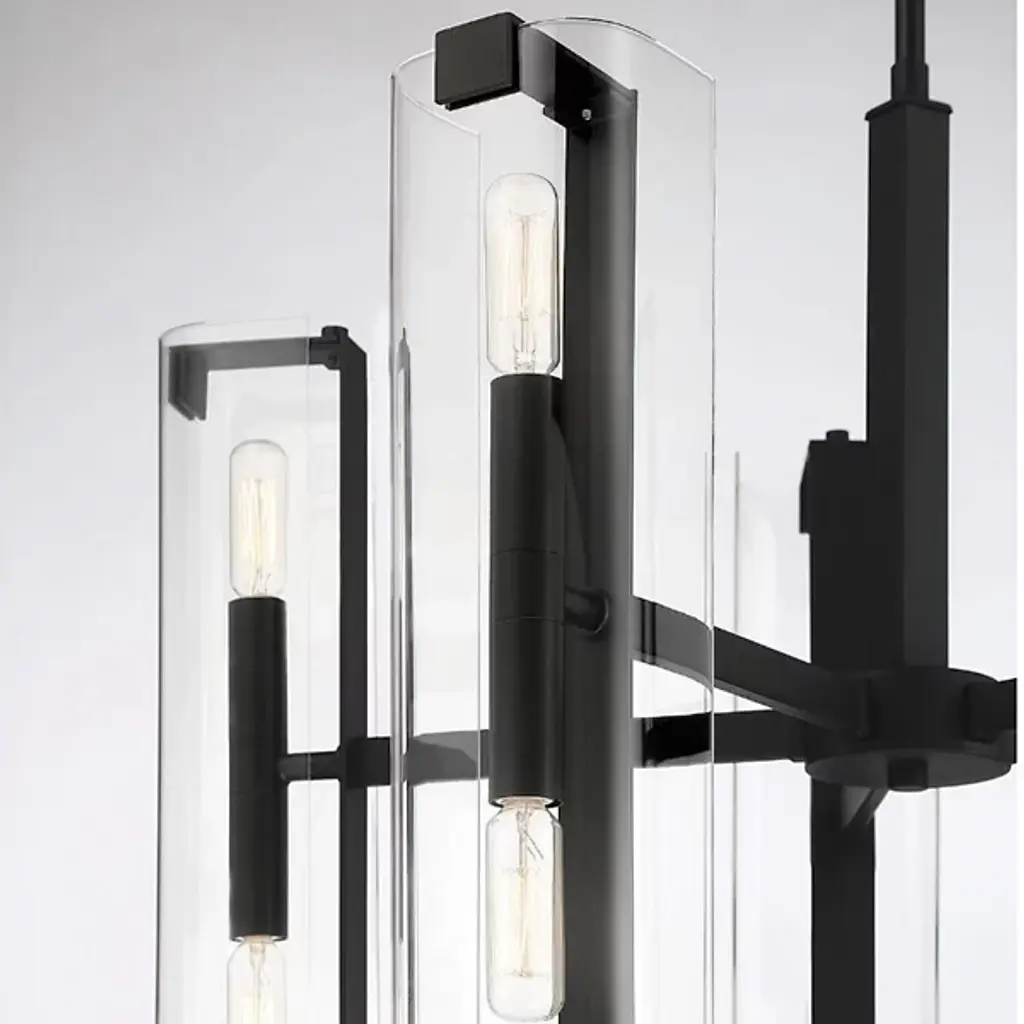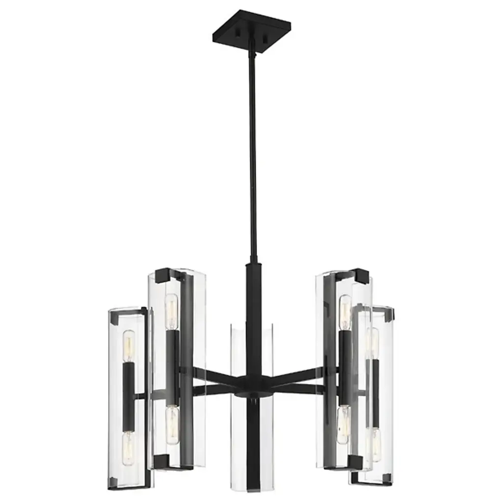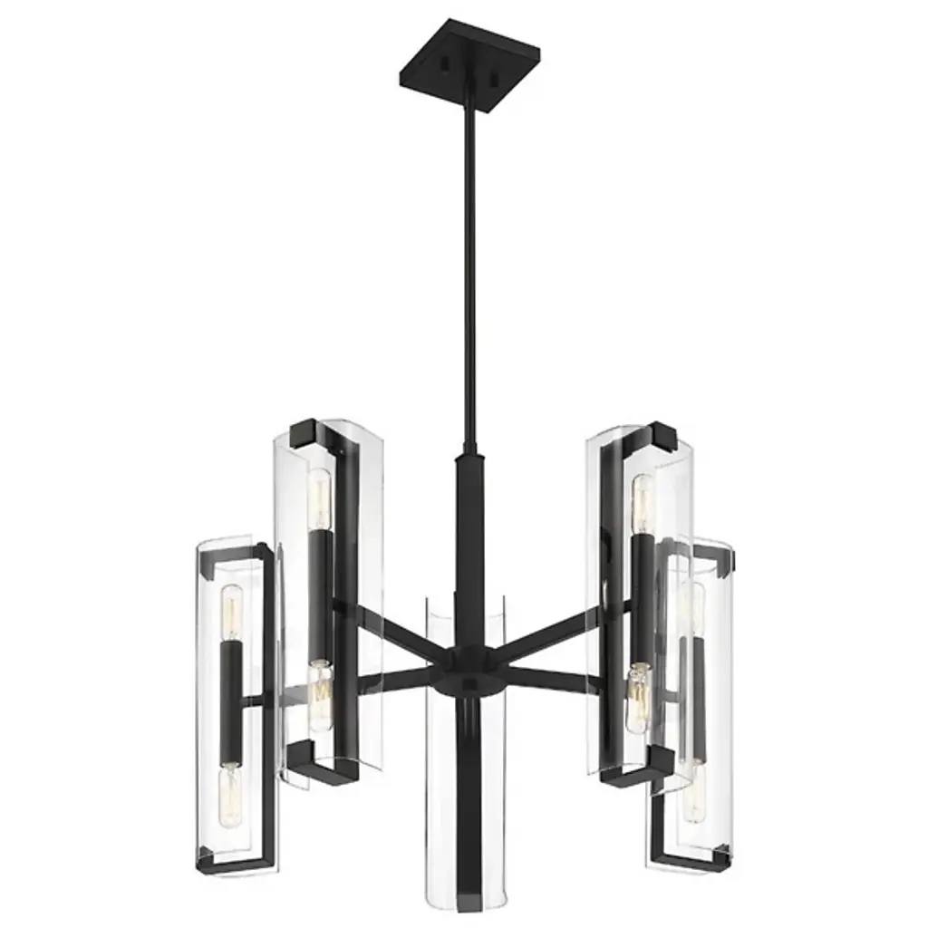 A light source that's transparently beautiful. The Winfield 10-Light Chandelier by Savoy House is just the statement piece you want when styling an elegant space. Minimal in design with double-sided sockets nestled inside clear glass cylindrical shades, this ceiling fixture provides both up and downward illumination for optimum functionality. It would look perfect as the focal point in a contemporary living room or formal dining area.
