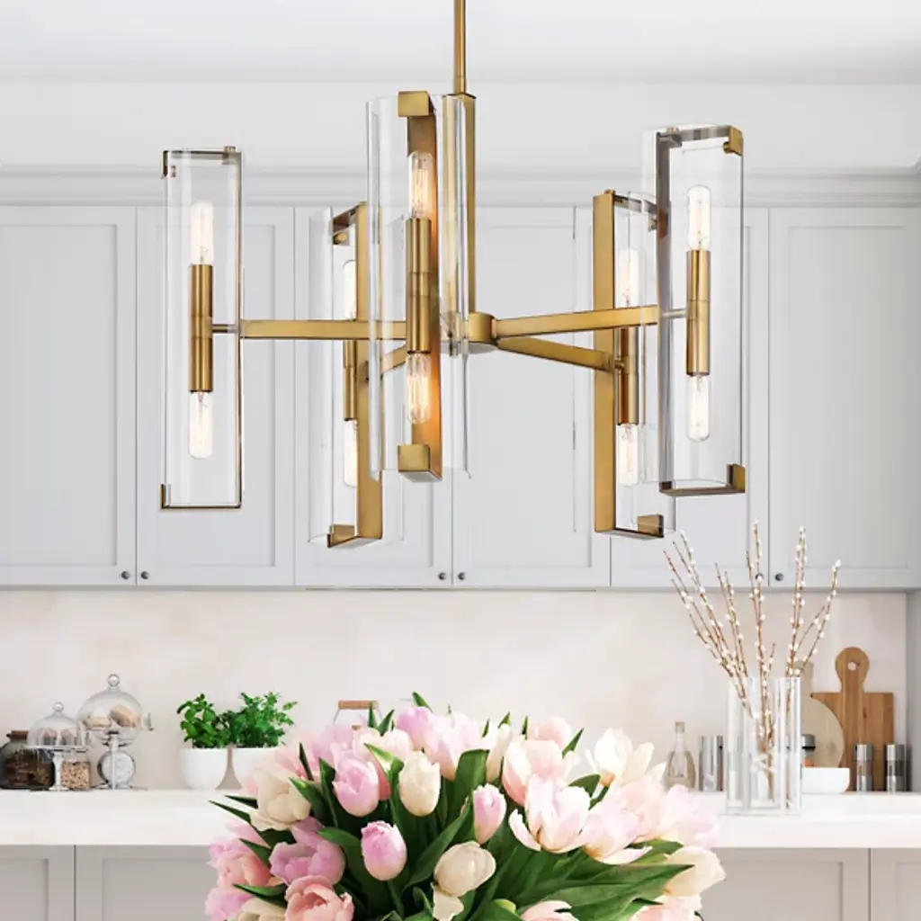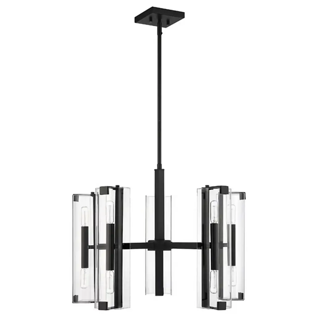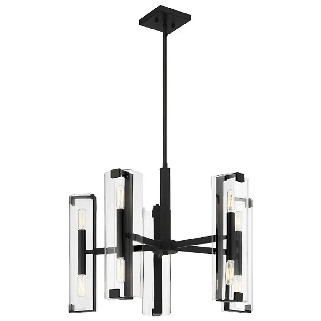 A light source that's transparently beautiful. The Winfield 10-Light Chandelier by Savoy House is just the statement piece you want when styling an elegant space. Minimal in design with double-sided sockets nestled inside clear glass cylindrical shades, this ceiling fixture provides both up and downward illumination for optimum functionality. It would look perfect as the focal point in a contemporary living room or formal dining area.
