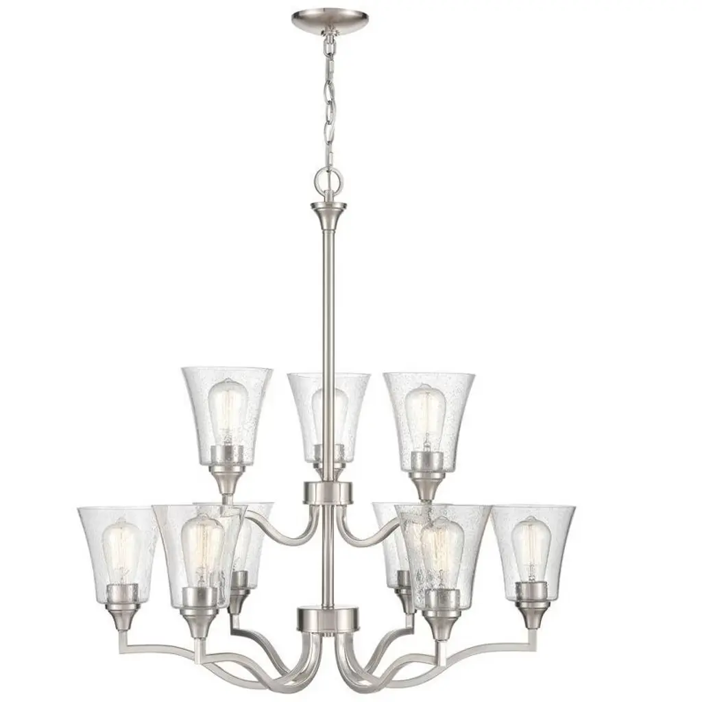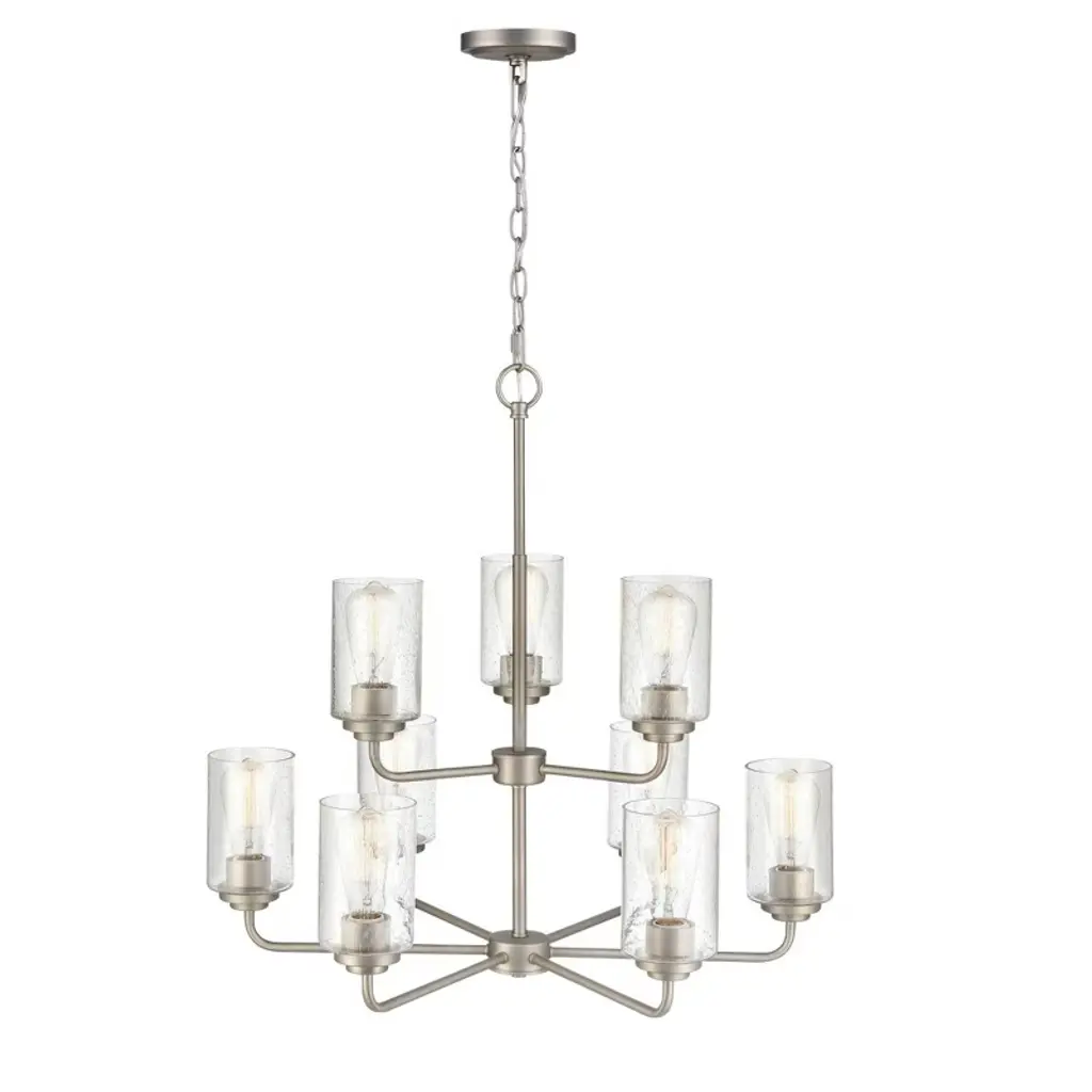 Offering you a wonderful centerpiece for your home brings you the Winslow 2-Tier Chandelier by Kichler. This exquisite piece presents a 9-light feature providing your home with great quality lighting to brighten up your space. Its Clear Seeded glass shade and delicate finishes make for a beautiful presentation in any space you place it in.