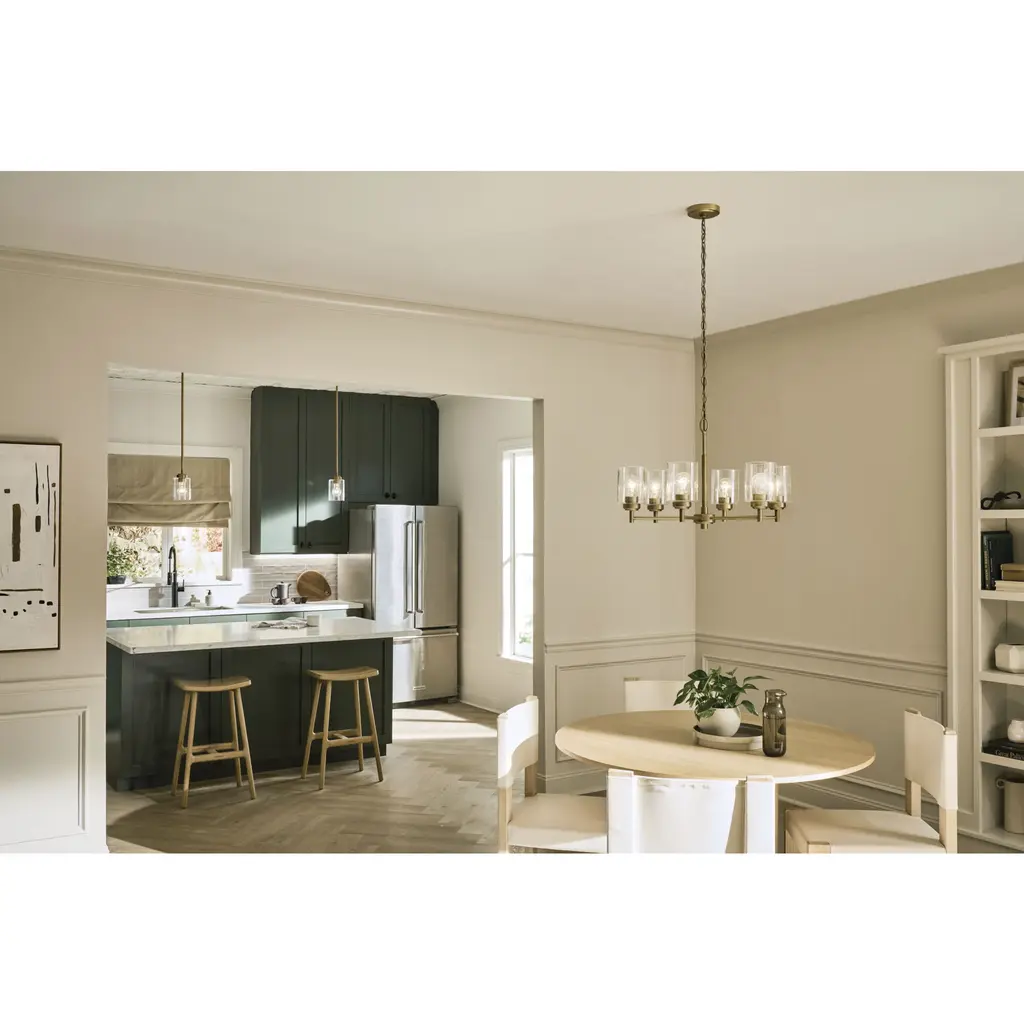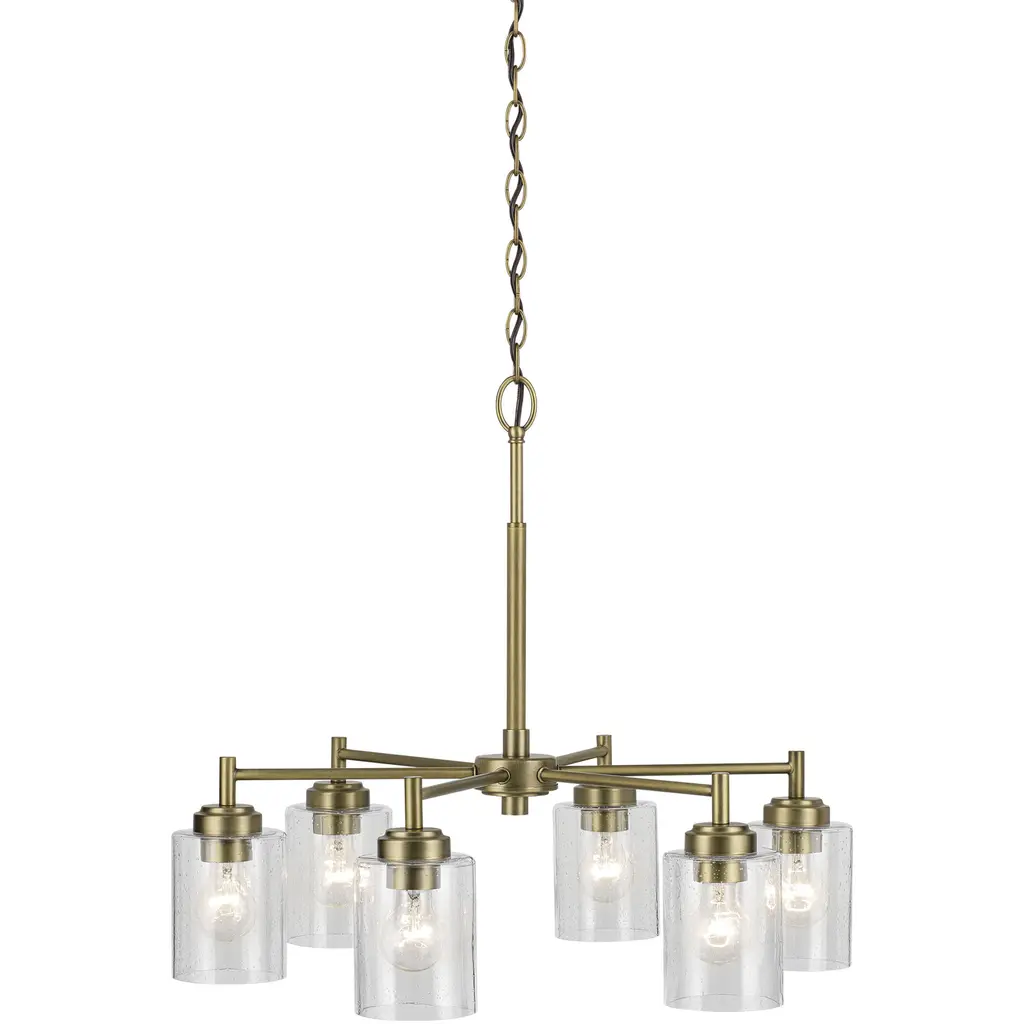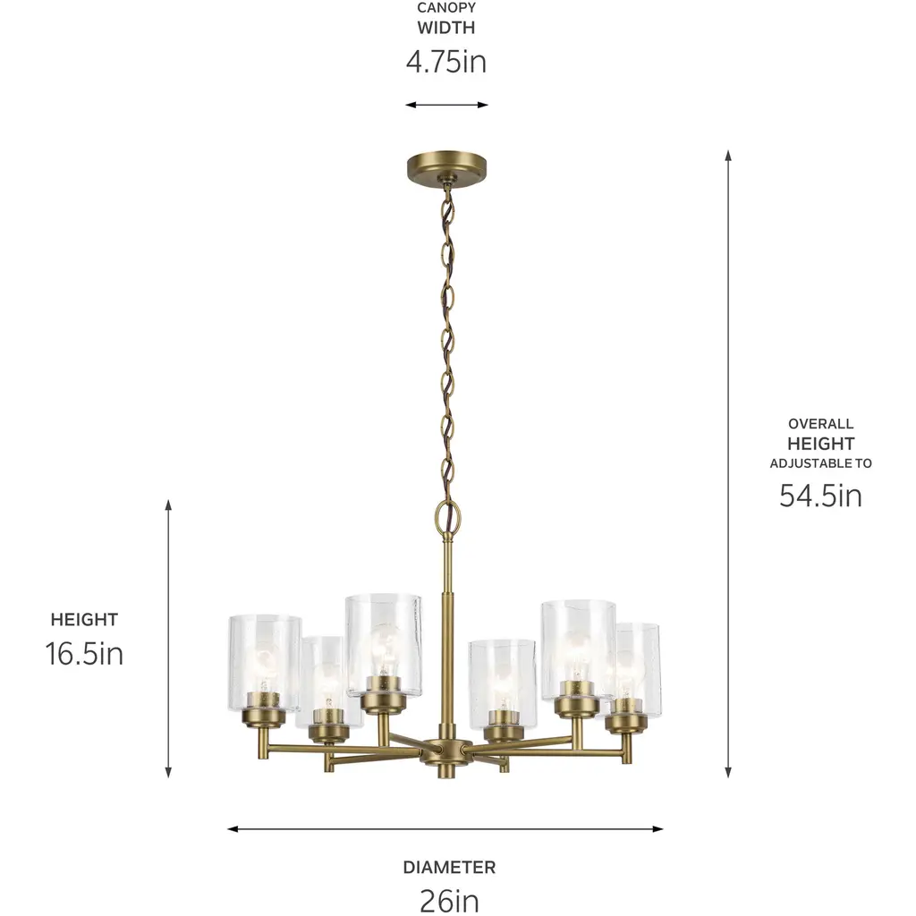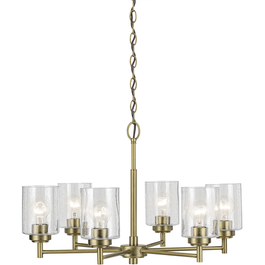 Winslow 6 Light Natural Brass Chandelier Ceiling Light, 1 Tier, Large